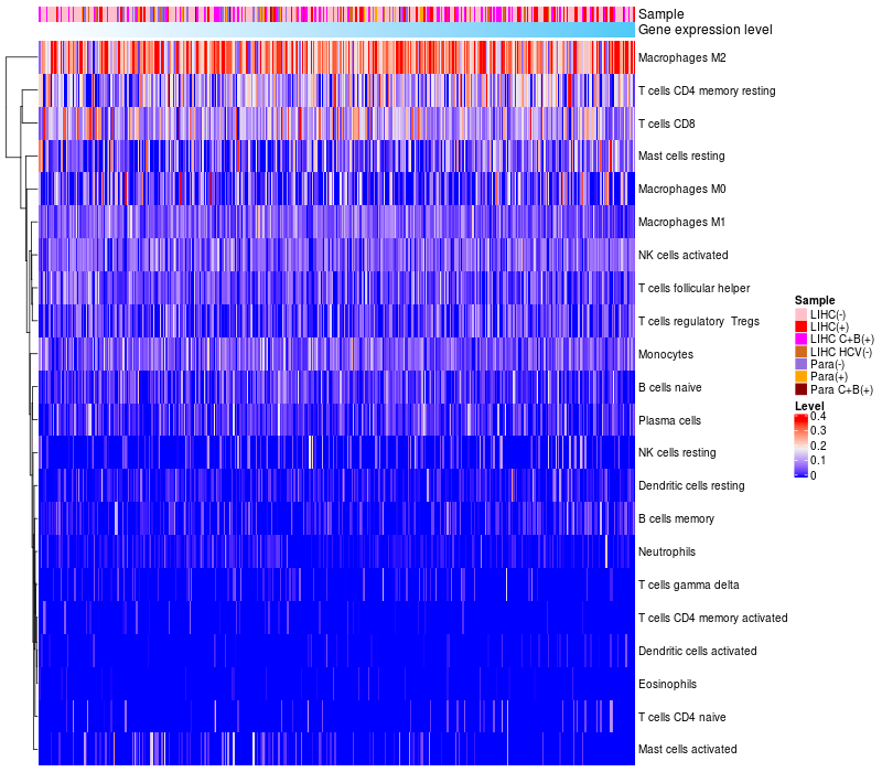 Relationship between gene expression and immune infiltrating cell level