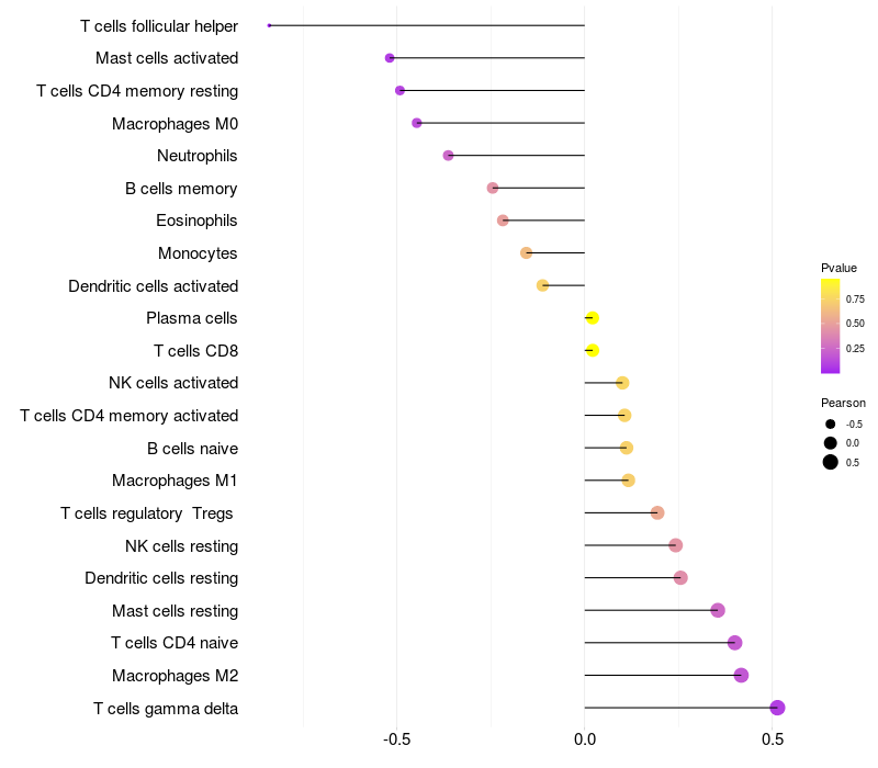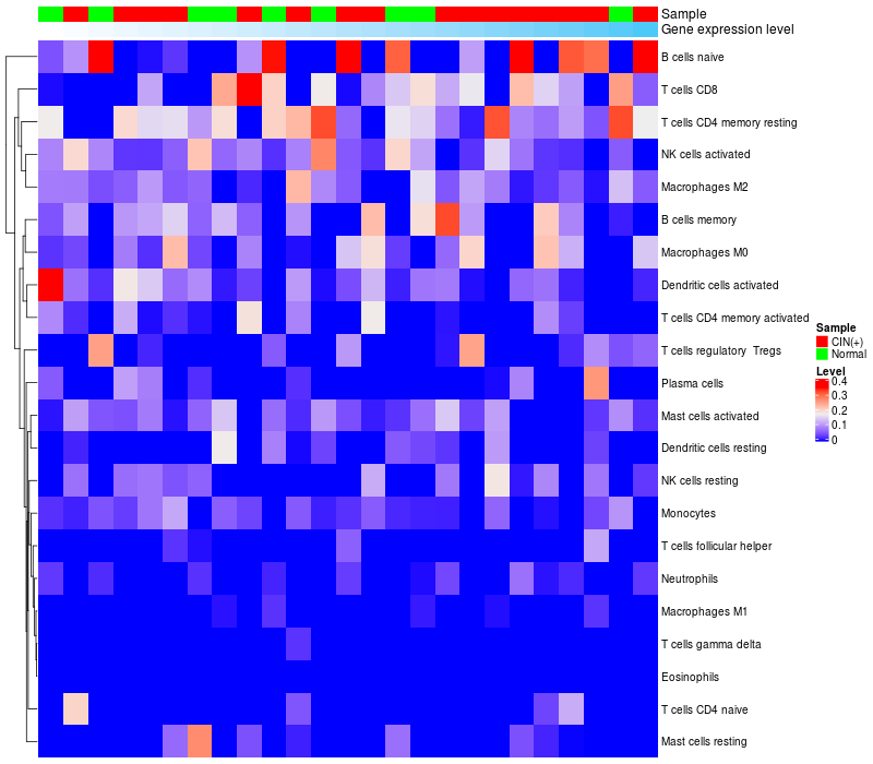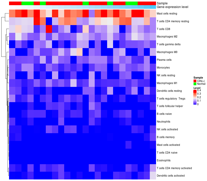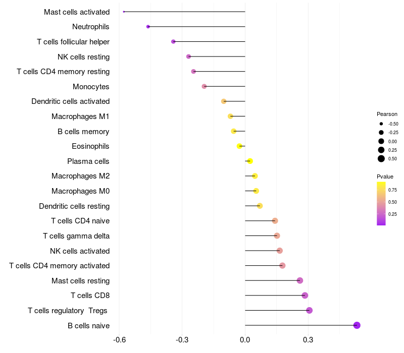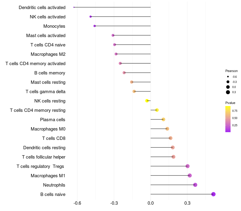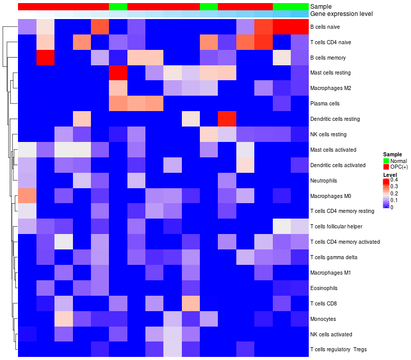 Relationship between gene expression and immune infiltrating cell level