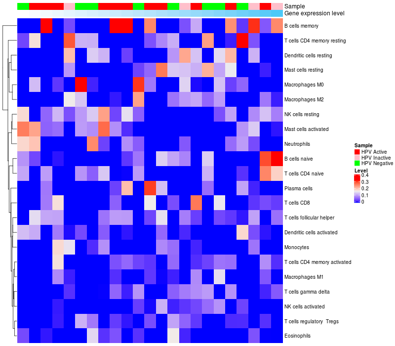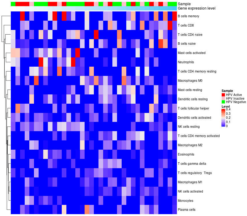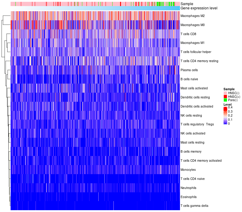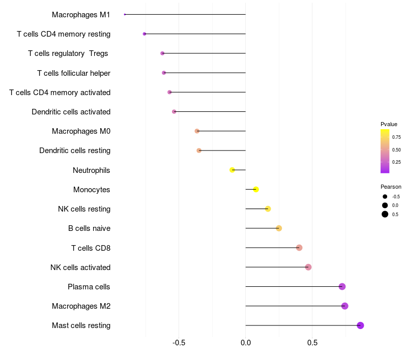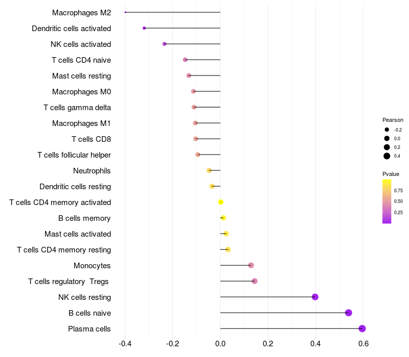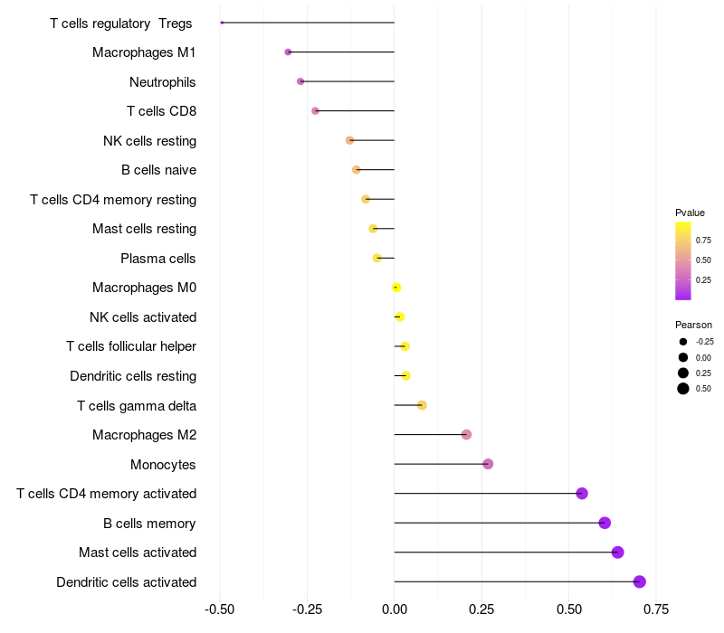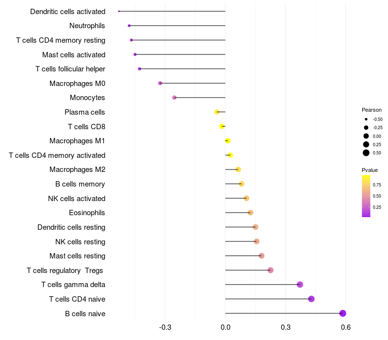 Relationship between gene expression and immune infiltrating cell level