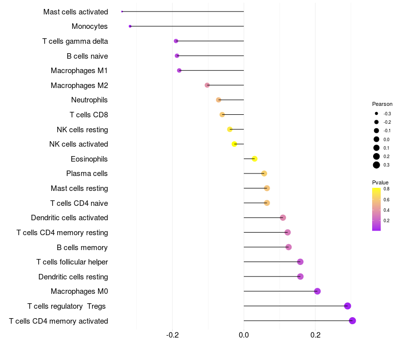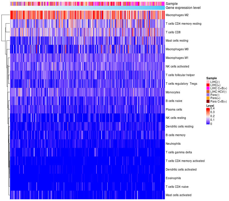 Relationship between gene expression and immune infiltrating cell level