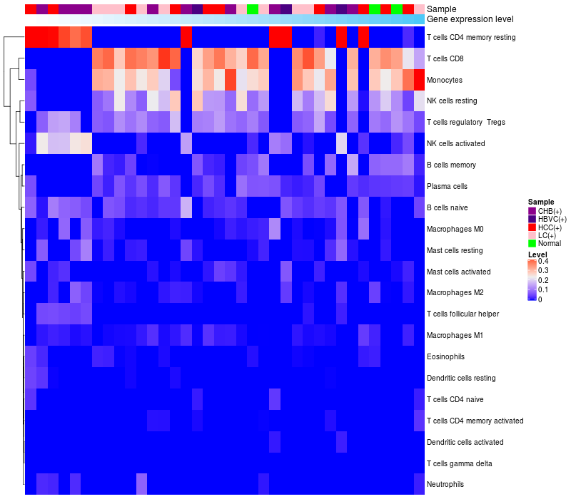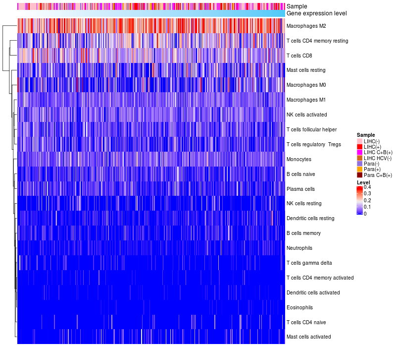 Liver hepatocellular carcinoma HCV (HBV+)(86), Liver hepatocellular carcinoma HCV (HBV-)(19), Liver hepatocellular carcinoma (HBV+)(209), Liver hepatocellular carcinoma (HBV+)(60), Paracancerous HCV (HBV+)(4), Paracancerous (HBV-)(28), Paracancerous (HBV+)(18) |