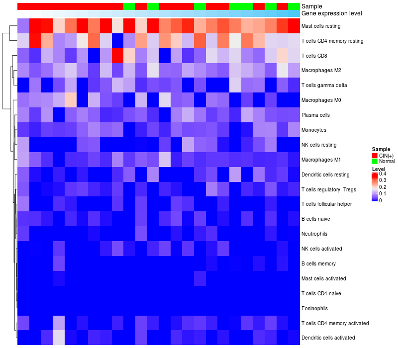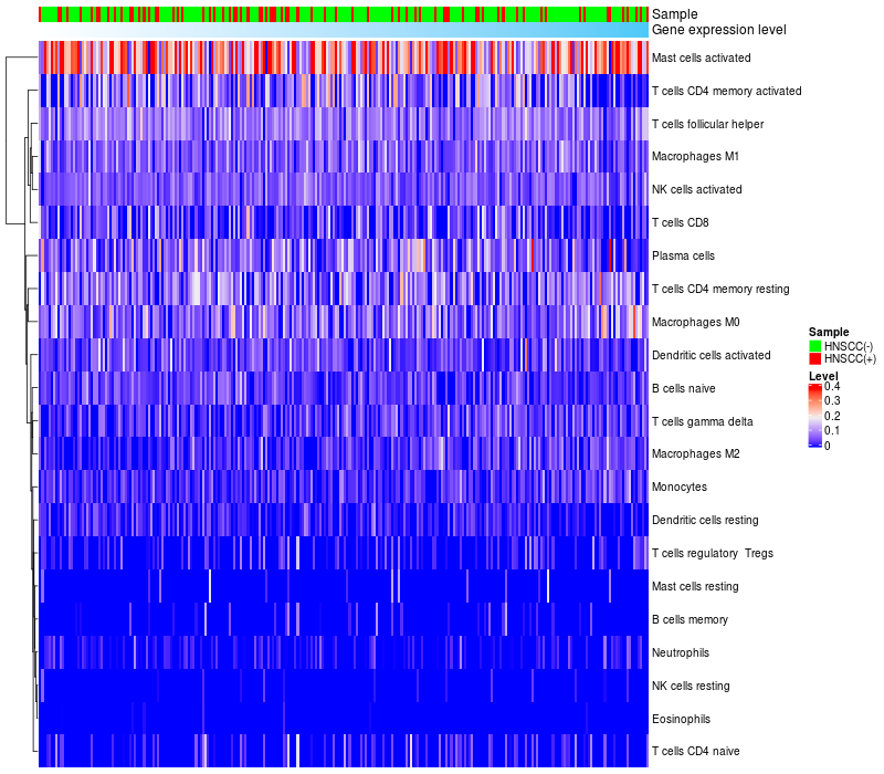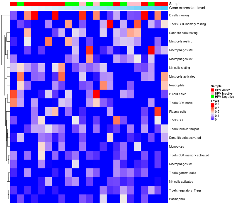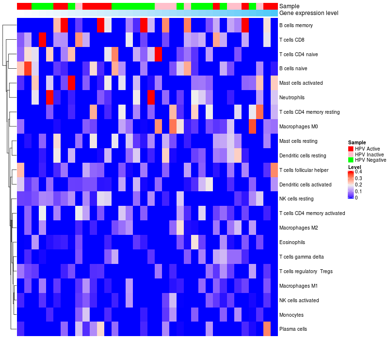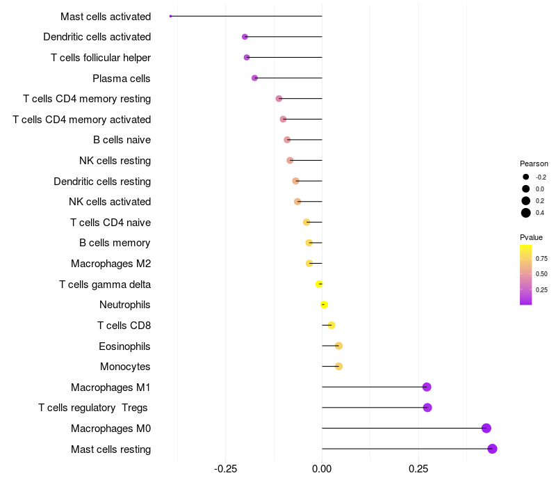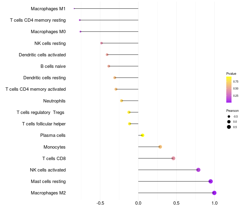 Lollipop of ZNF521 expression and immune infiltrating cell level correlation result in HPV+ samples