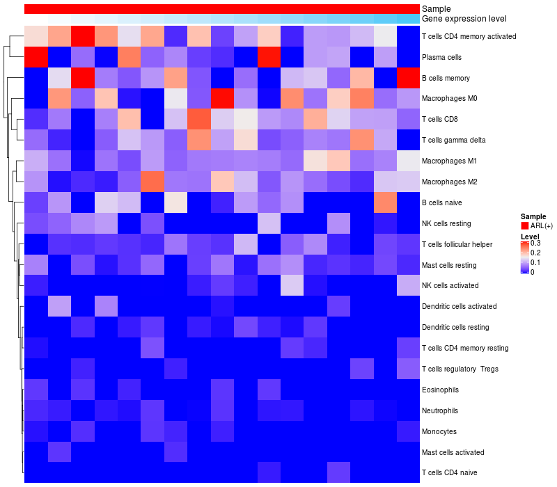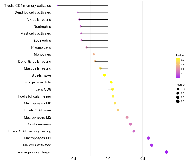 Relationship between gene expression and immune infiltrating cell level