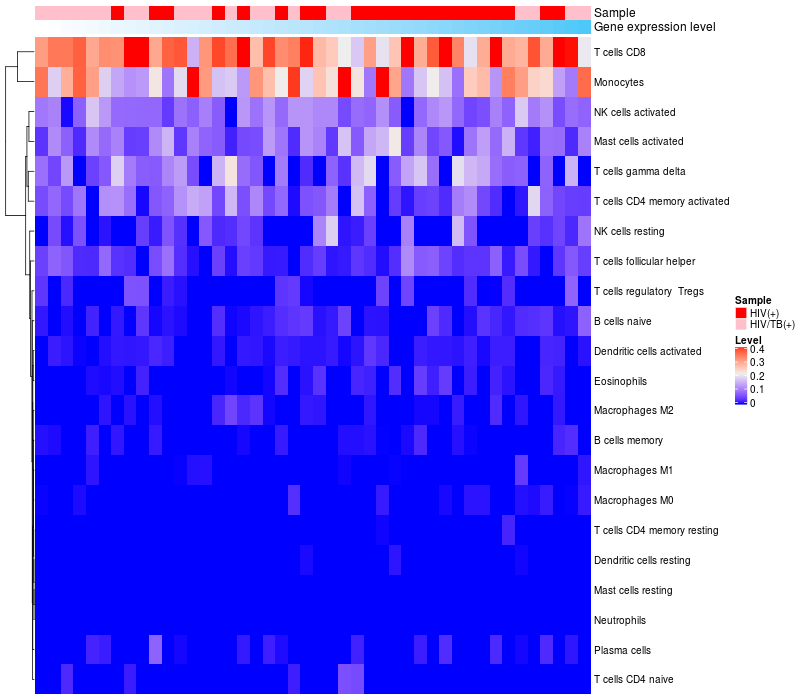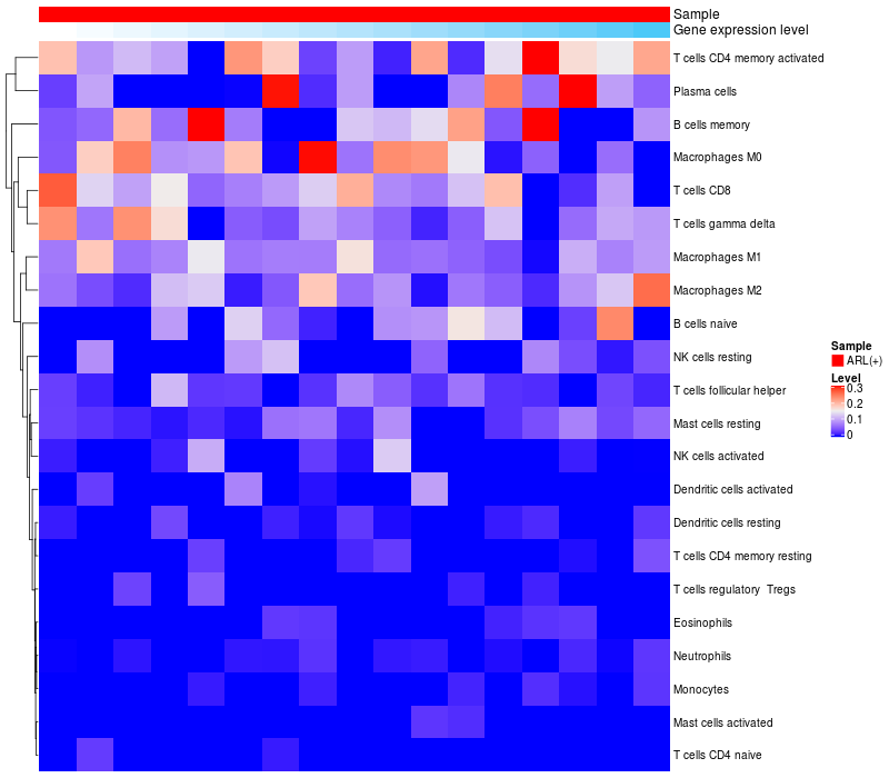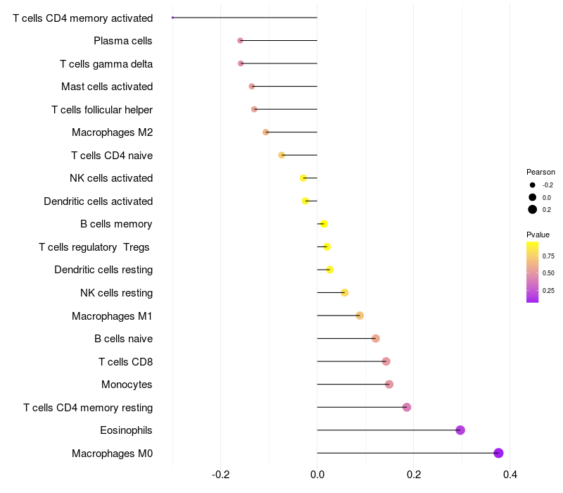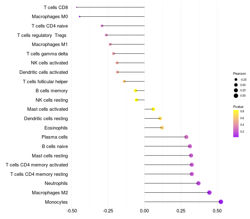 Relationship between gene expression and immune infiltrating cell level
