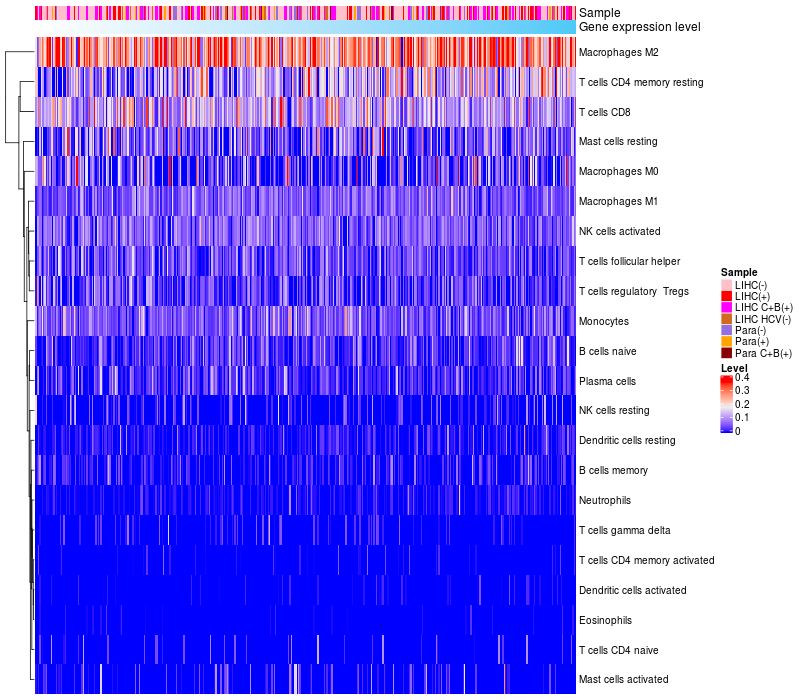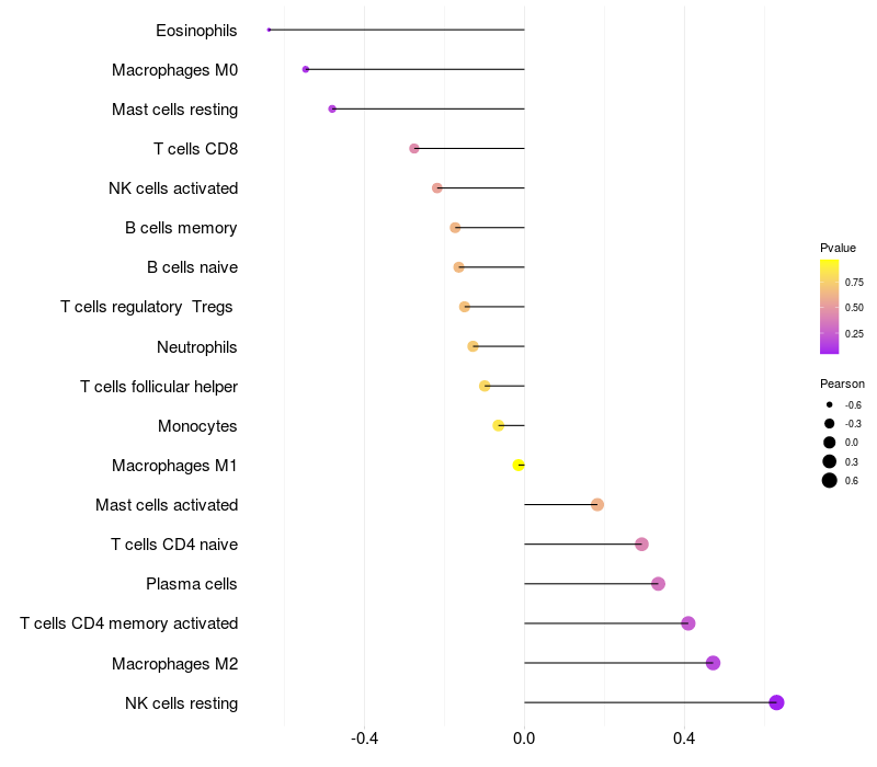 Relationship between gene expression and immune infiltrating cell level