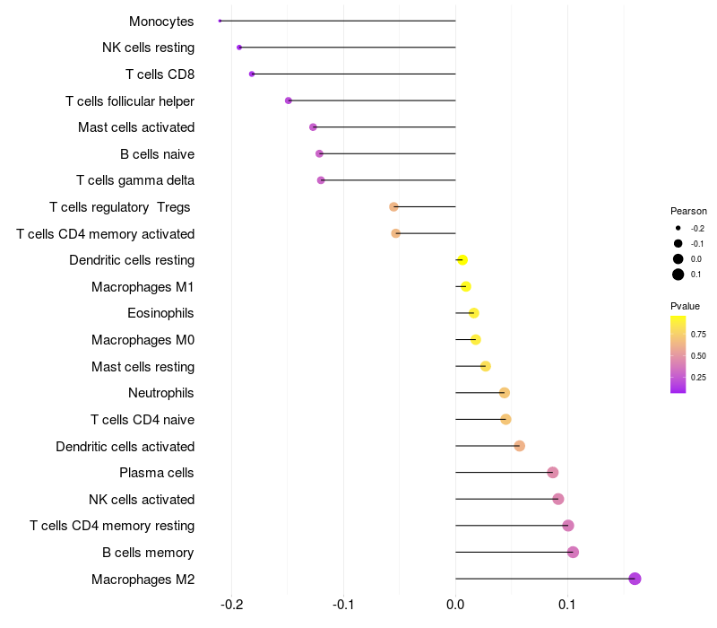 Lollipop of ZNF562 expression and immune infiltrating cell level correlation result in HBV+ Liver cirrhosis samples