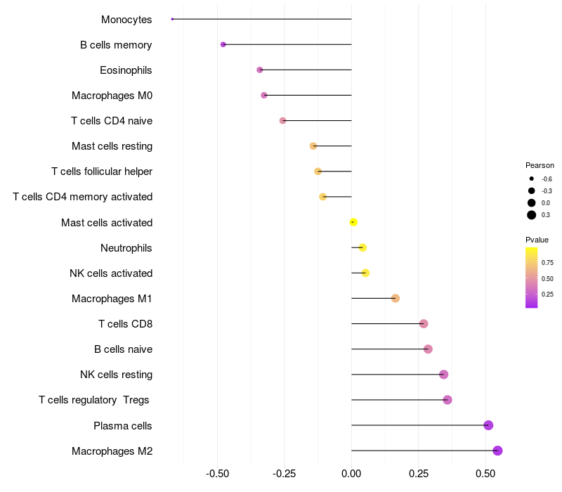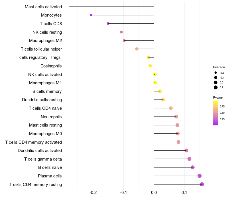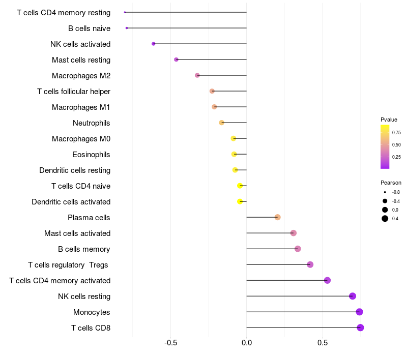 Relationship between gene expression and immune infiltrating cell level