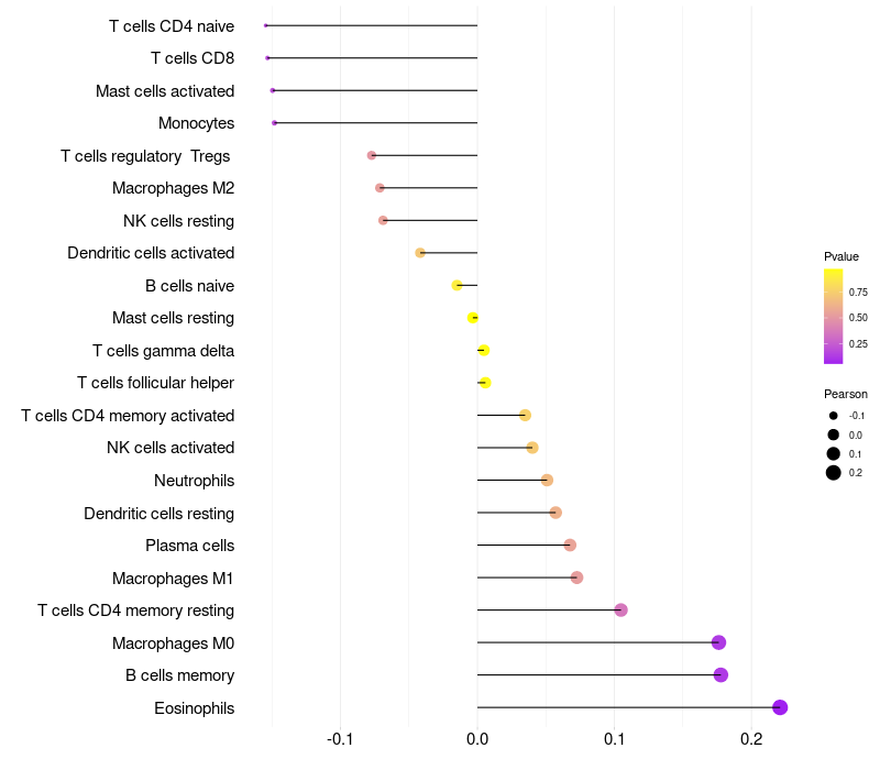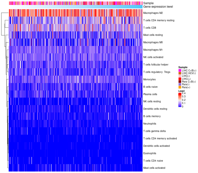 Relationship between gene expression and immune infiltrating cell level