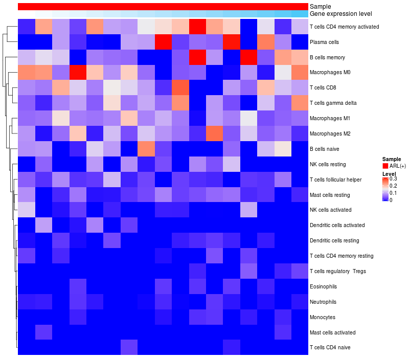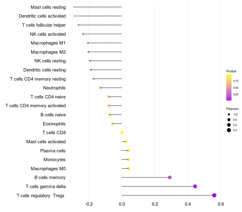 Relationship between gene expression and immune infiltrating cell level