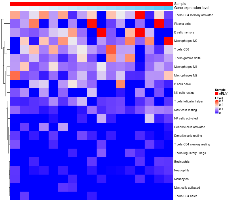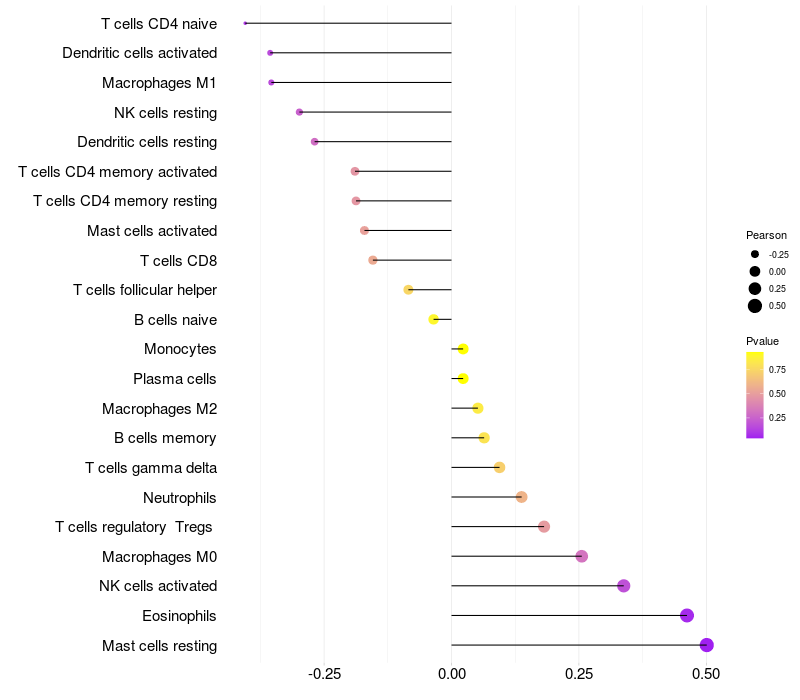 Relationship between gene expression and immune infiltrating cell level
