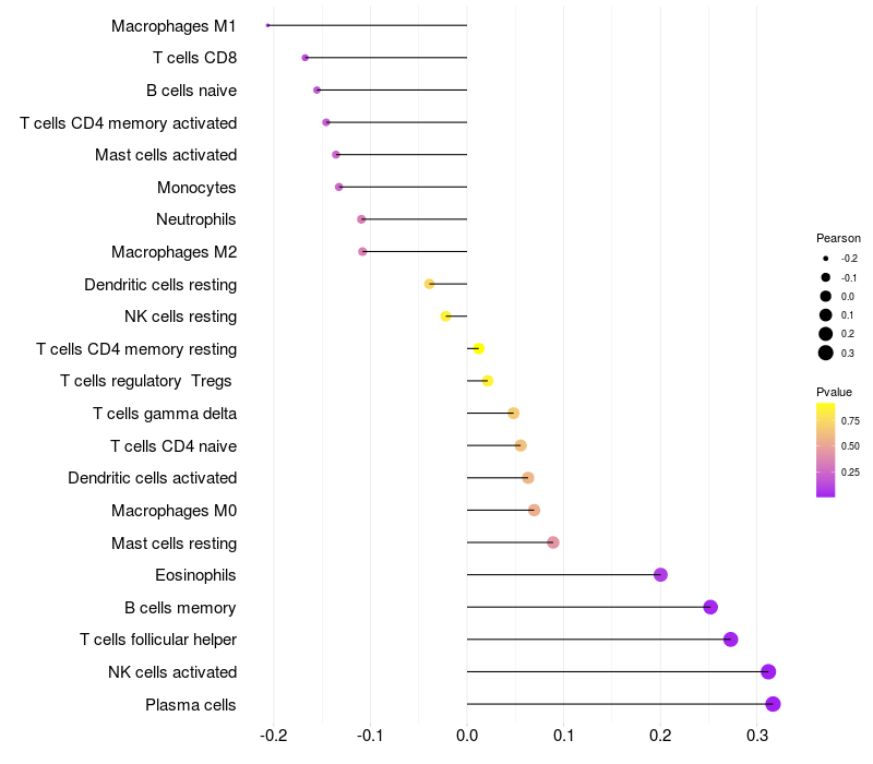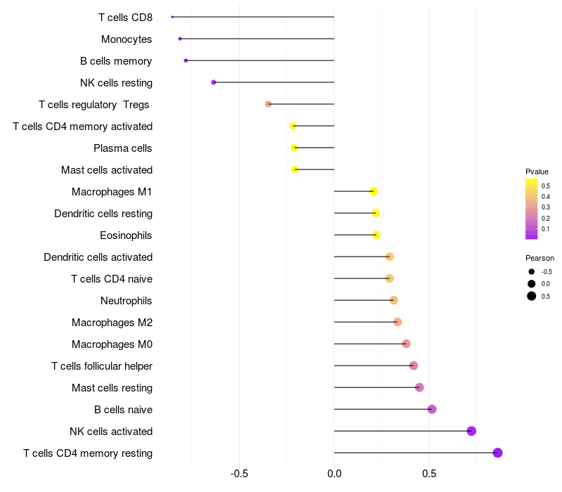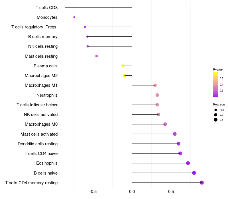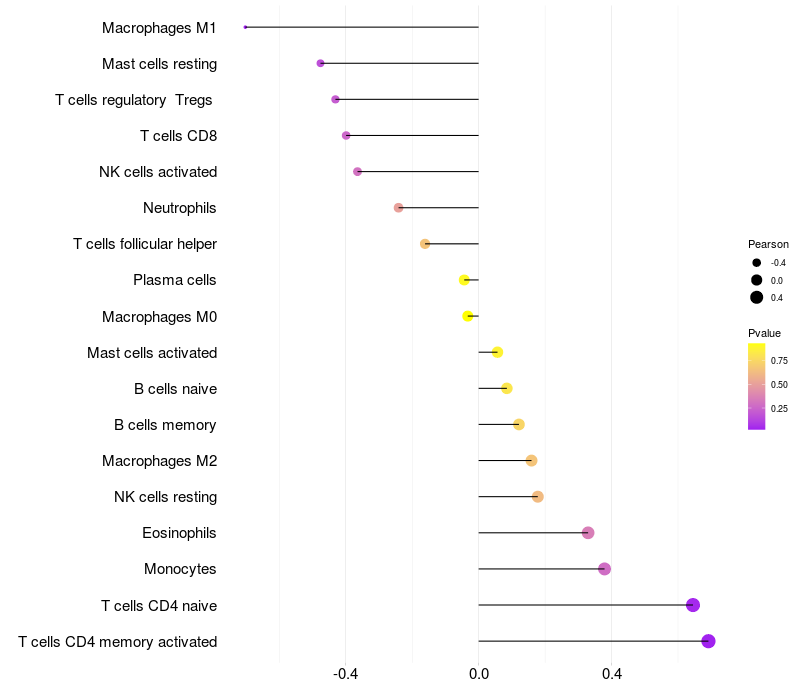 Lollipop of ZNF629 expression and immune infiltrating cell level correlation result in HBV+ Liver cirrhosis samples