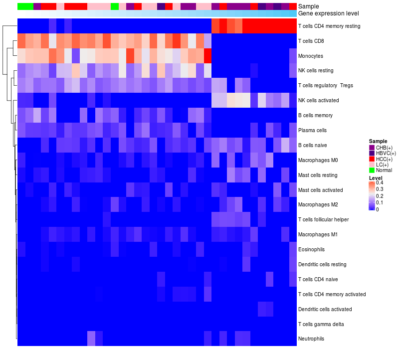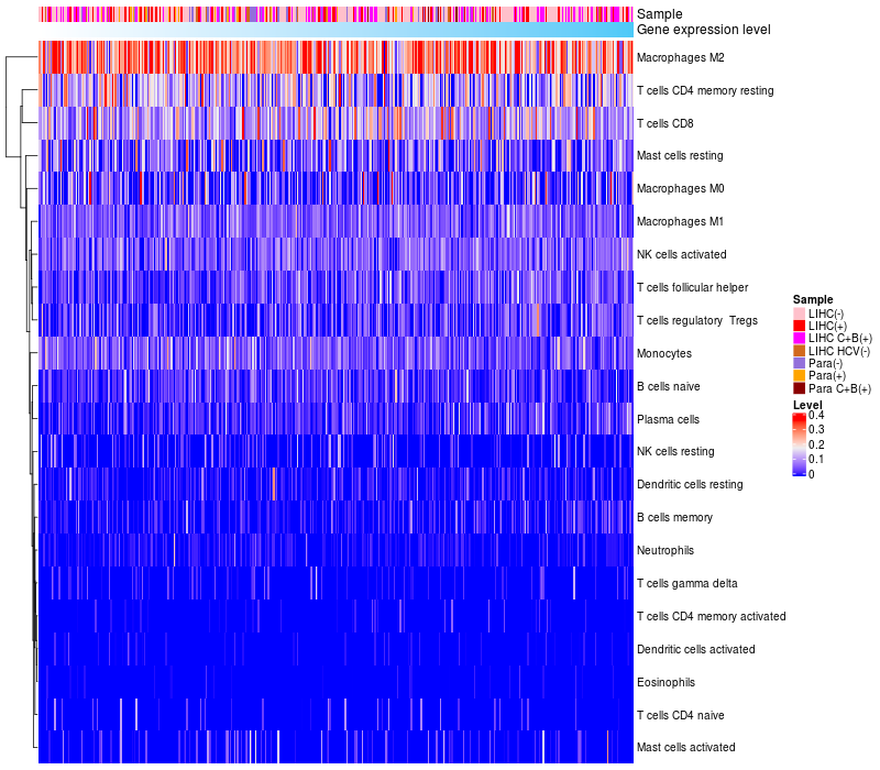 Liver hepatocellular carcinoma HCV (HBV+)(86), Liver hepatocellular carcinoma HCV (HBV-)(19), Liver hepatocellular carcinoma (HBV+)(209), Liver hepatocellular carcinoma (HBV+)(60), Paracancerous HCV (HBV+)(4), Paracancerous (HBV-)(28), Paracancerous (HBV+)(18) |