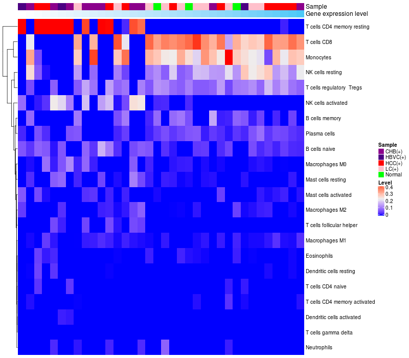 Relationship between gene expression and immune infiltrating cell level