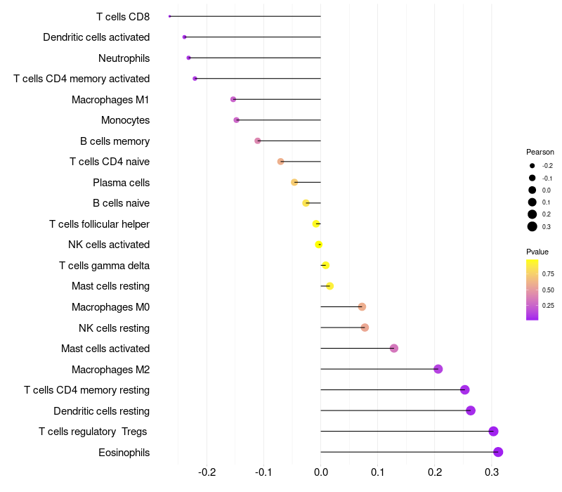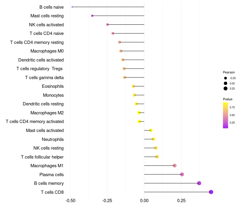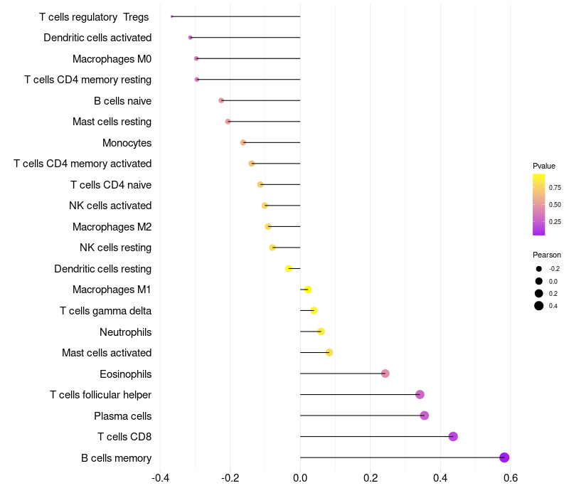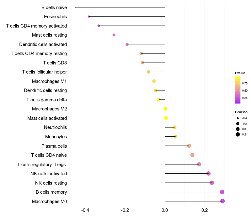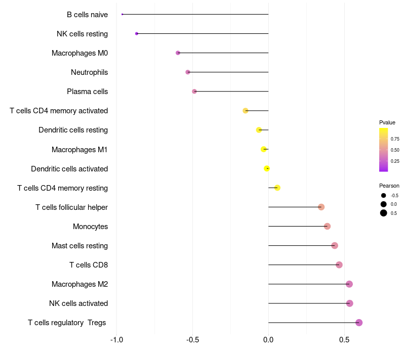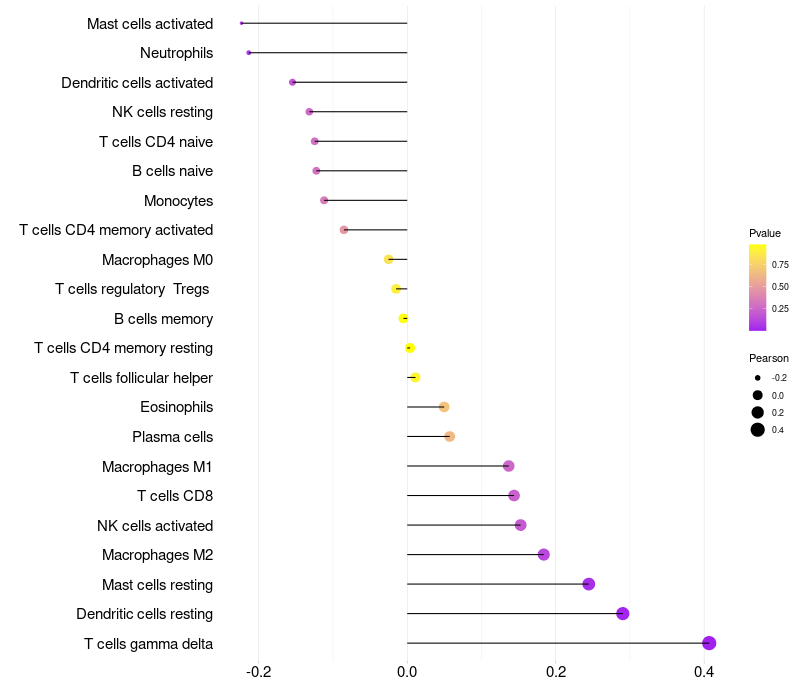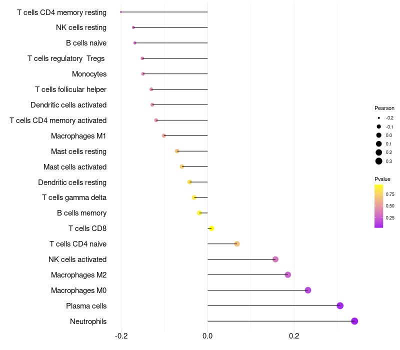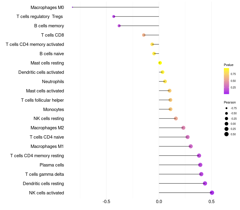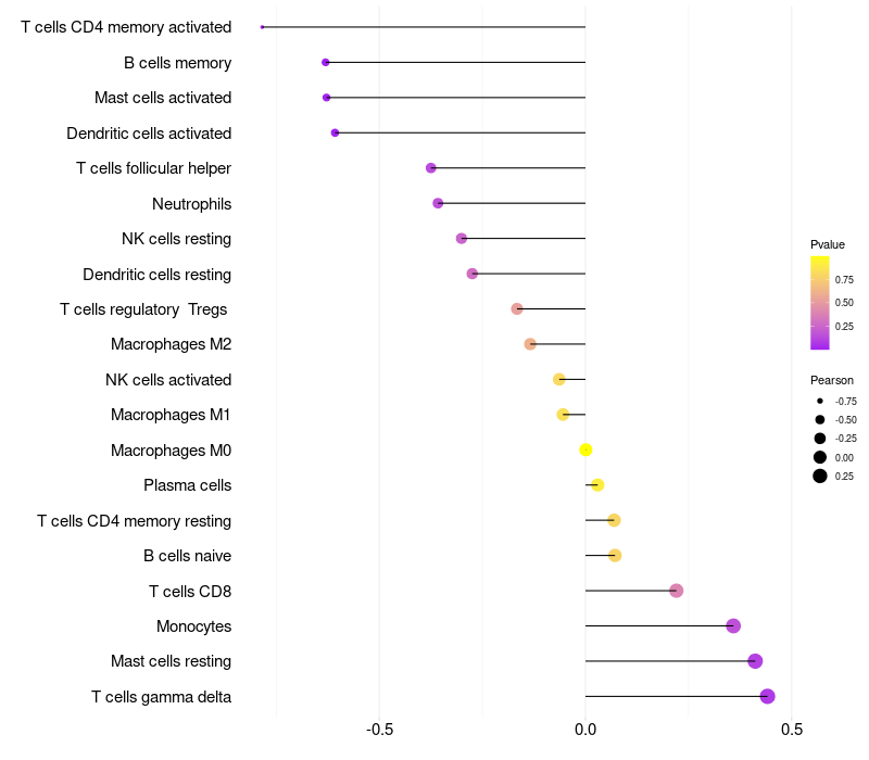 Lollipop of ZNF706 expression and immune infiltrating cell level correlation result in HPV+ samples
