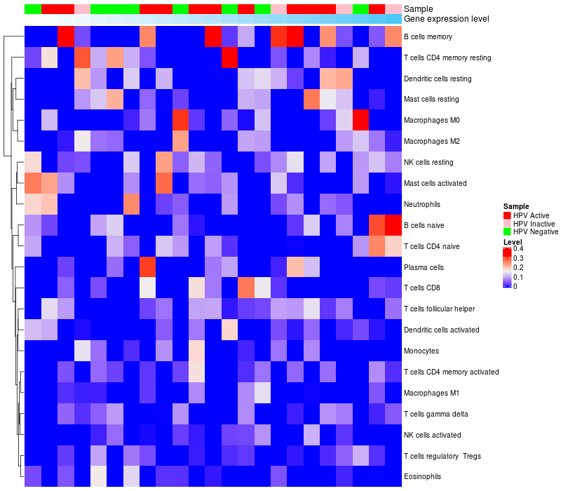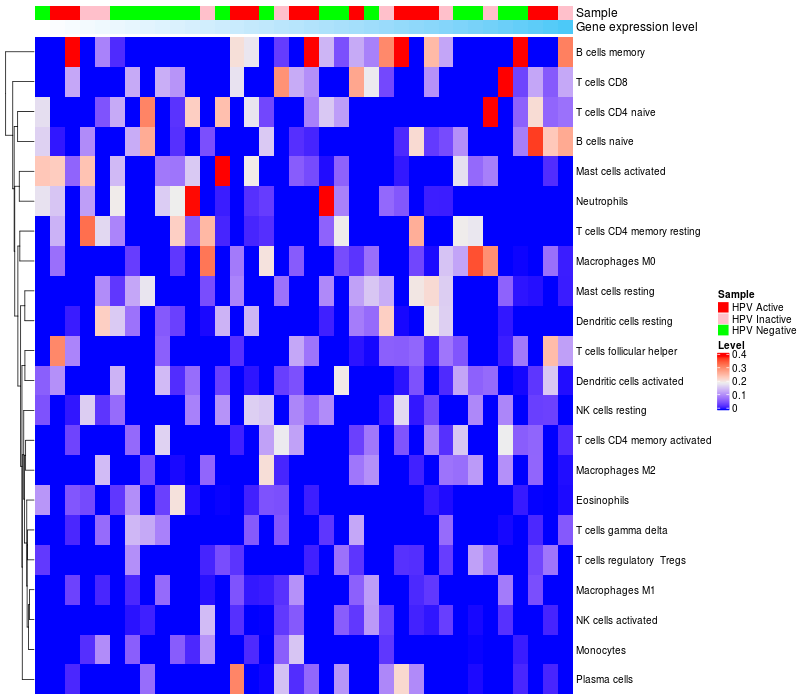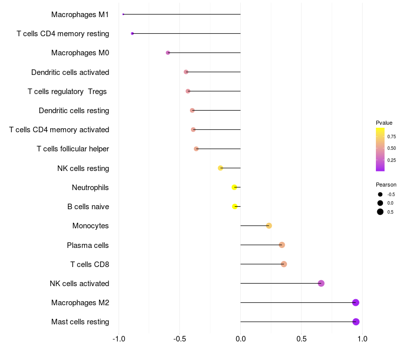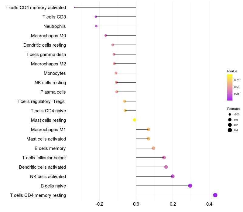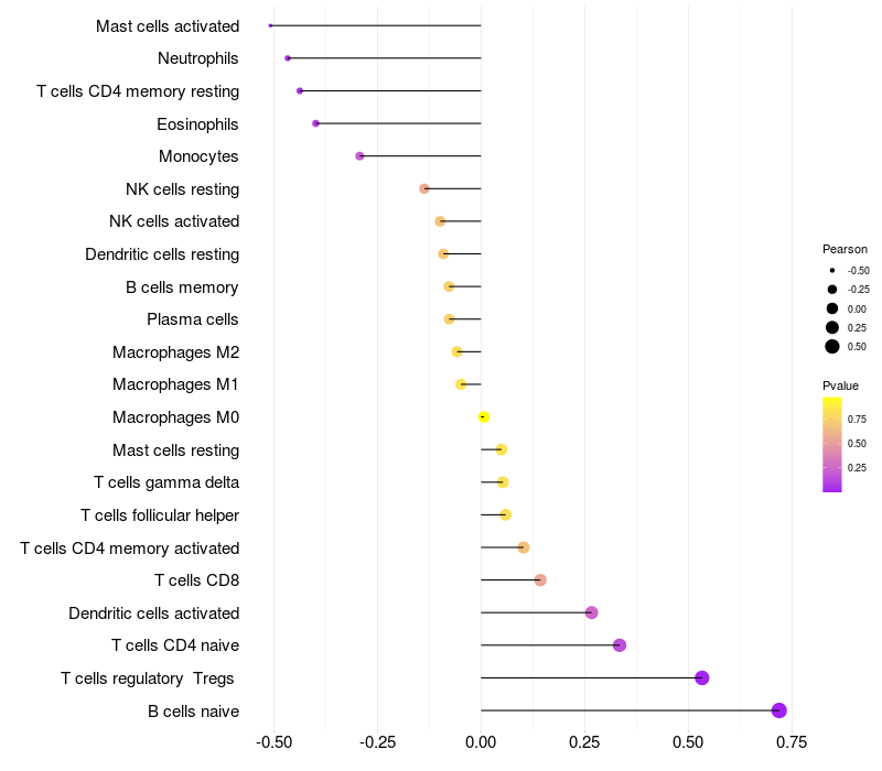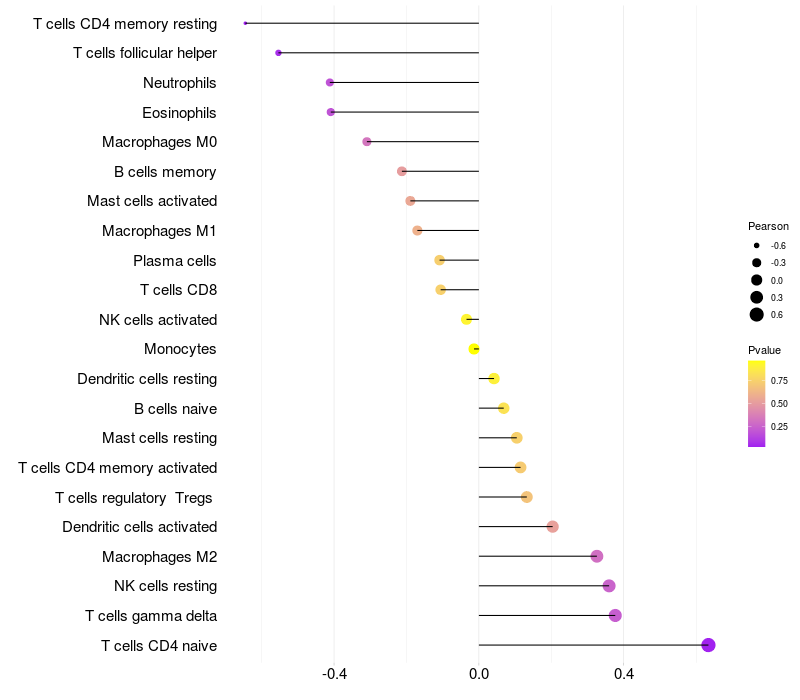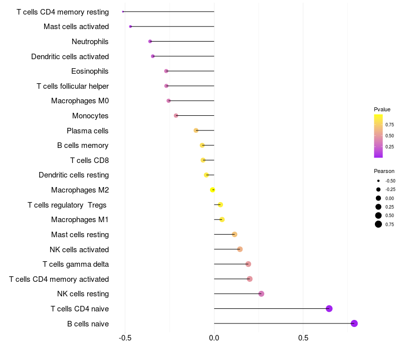 Lollipop of ZNF732 expression and immune infiltrating cell level correlation result in HPV+ samples