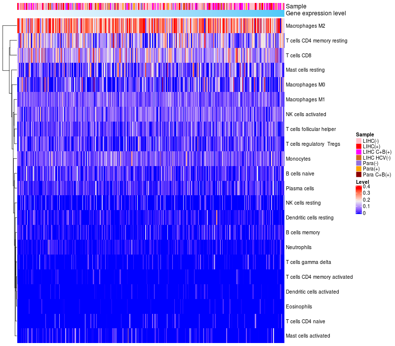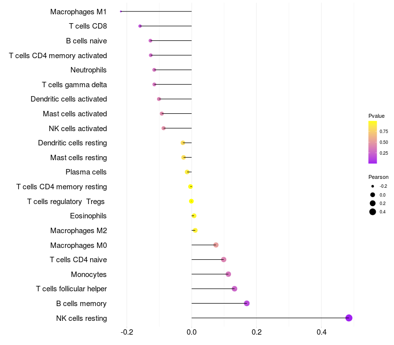 Relationship between gene expression and immune infiltrating cell level