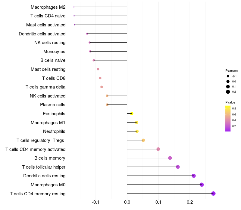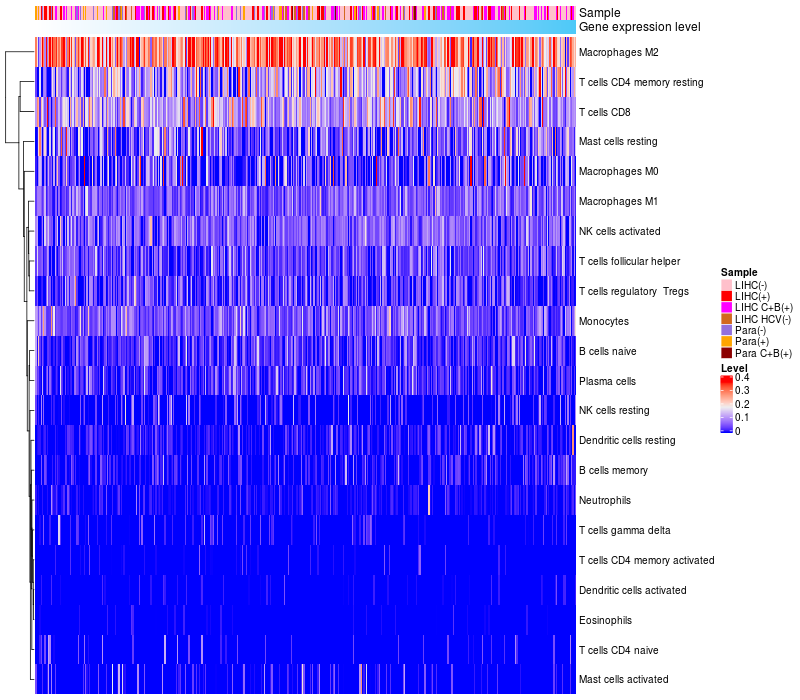 Relationship between gene expression and immune infiltrating cell level