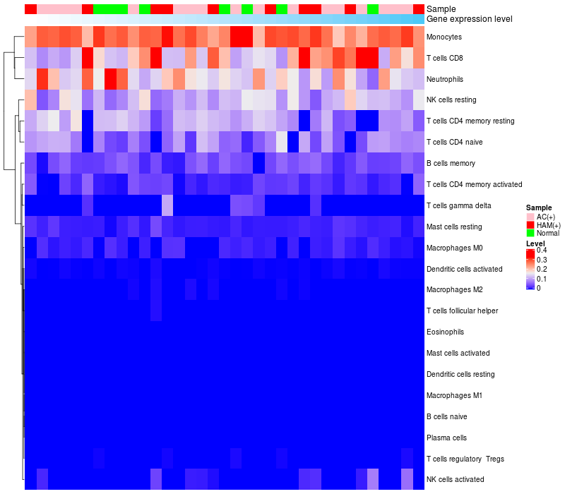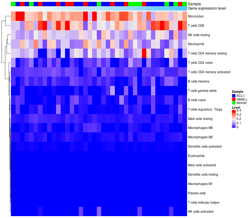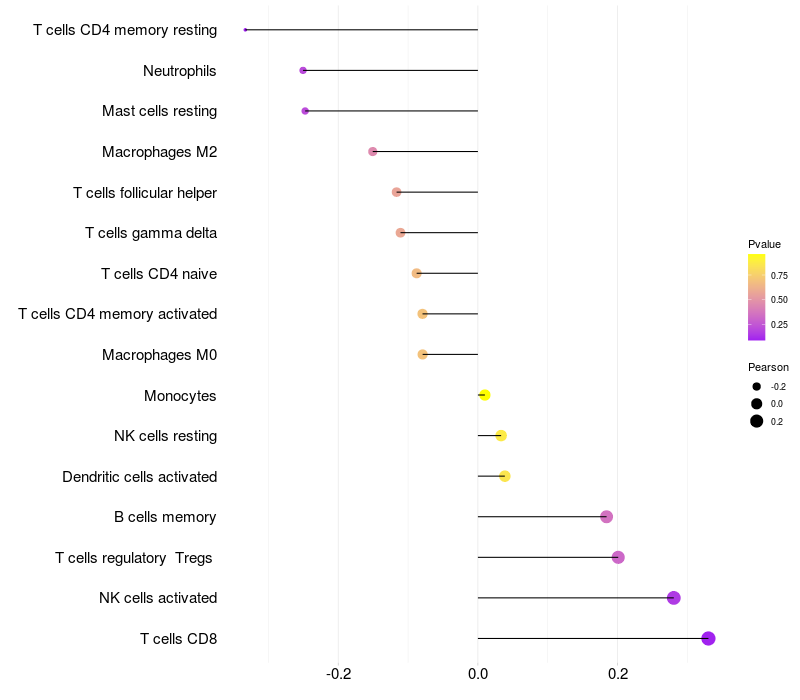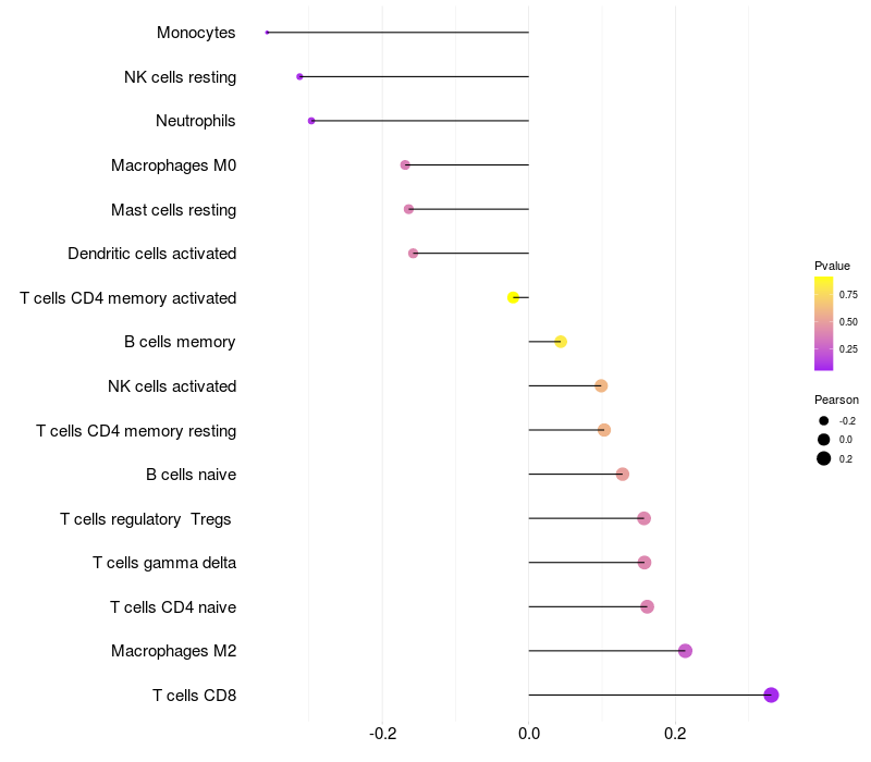 Lollipop of ZNF79 expression and immune infiltrating cell level correlation result in HTLV1+ samples