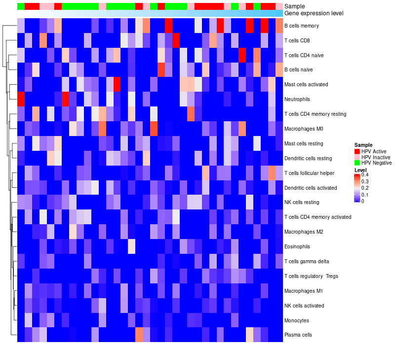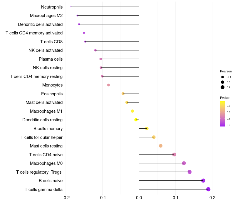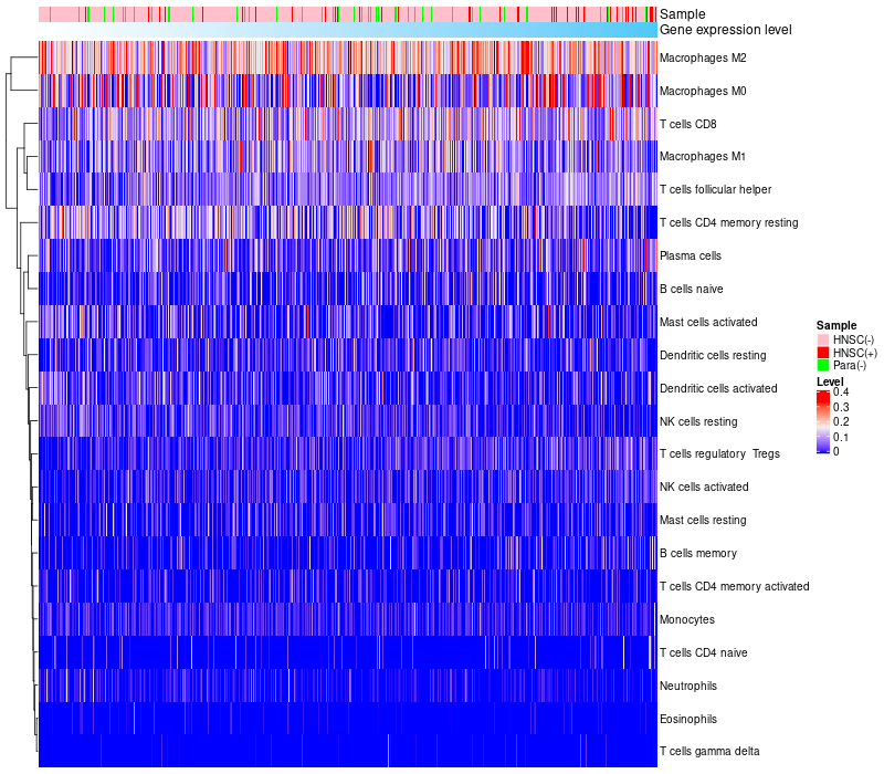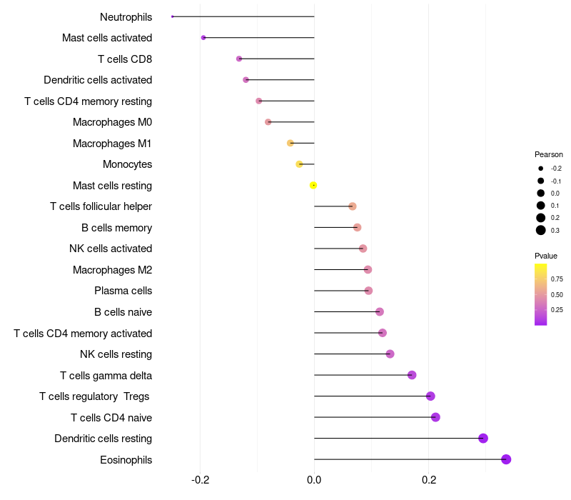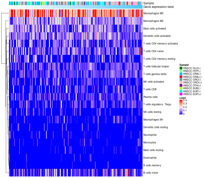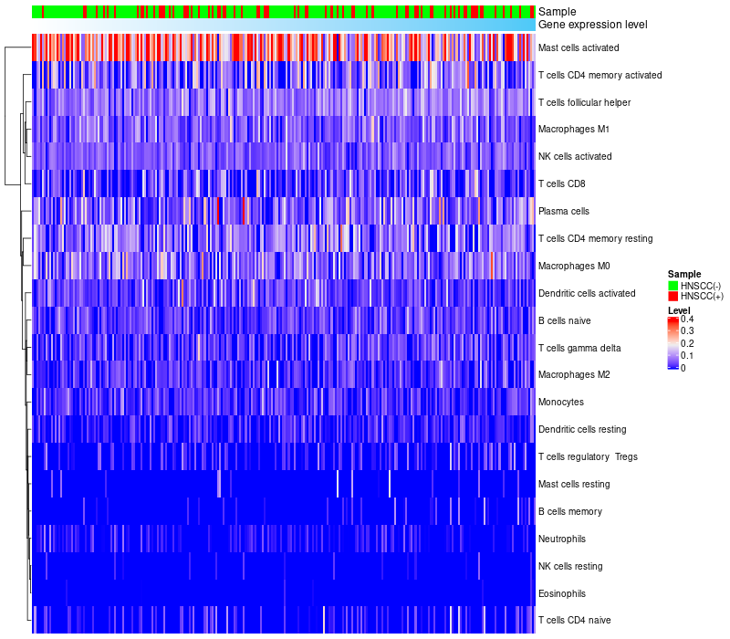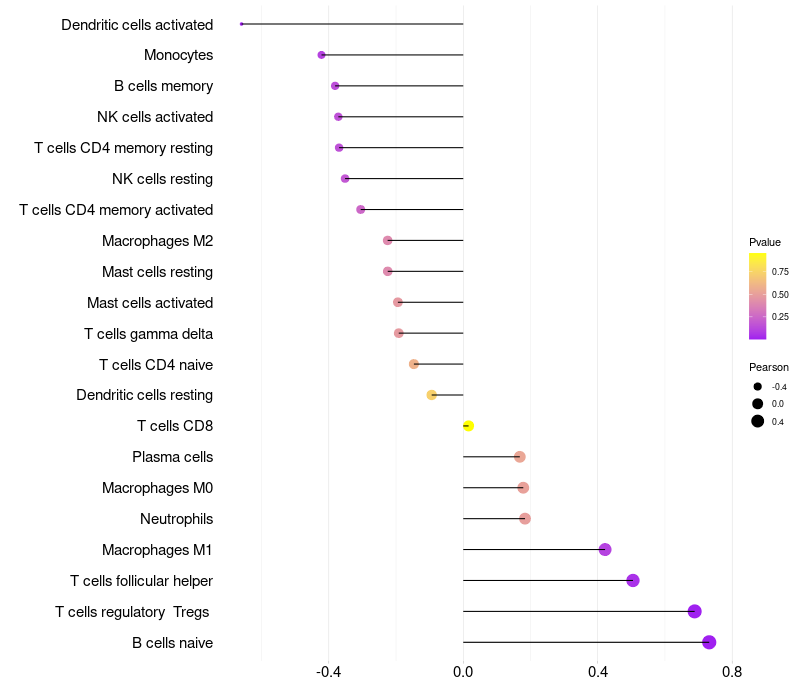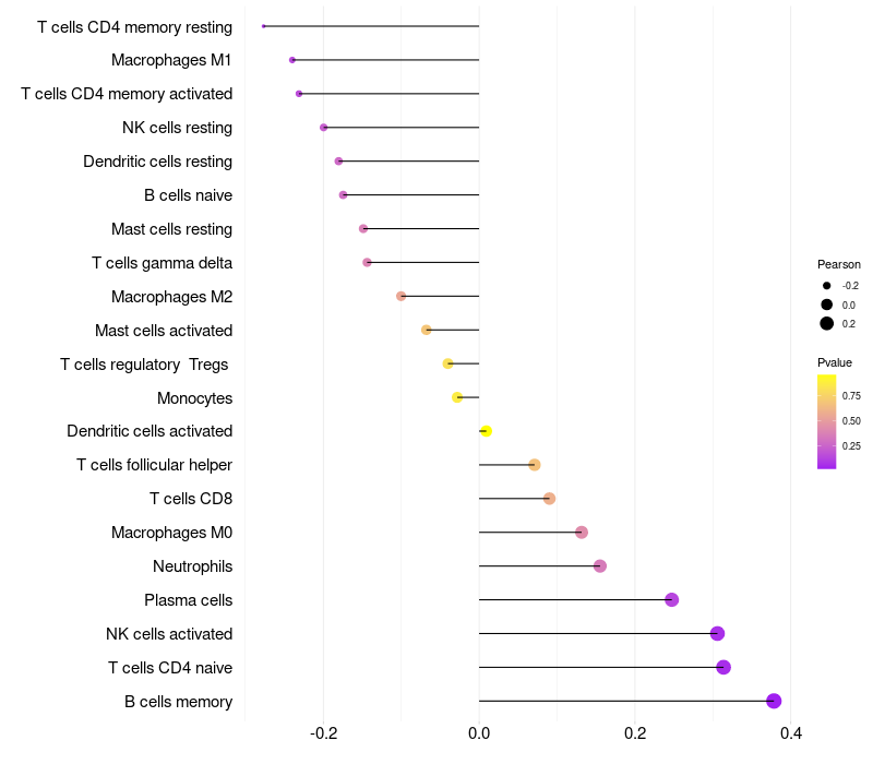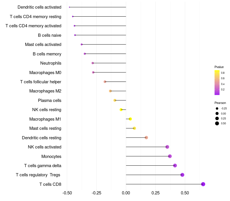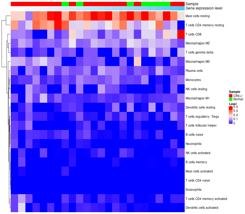 Relationship between gene expression and immune infiltrating cell level