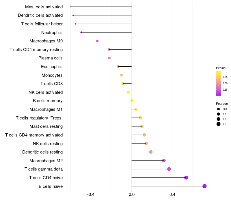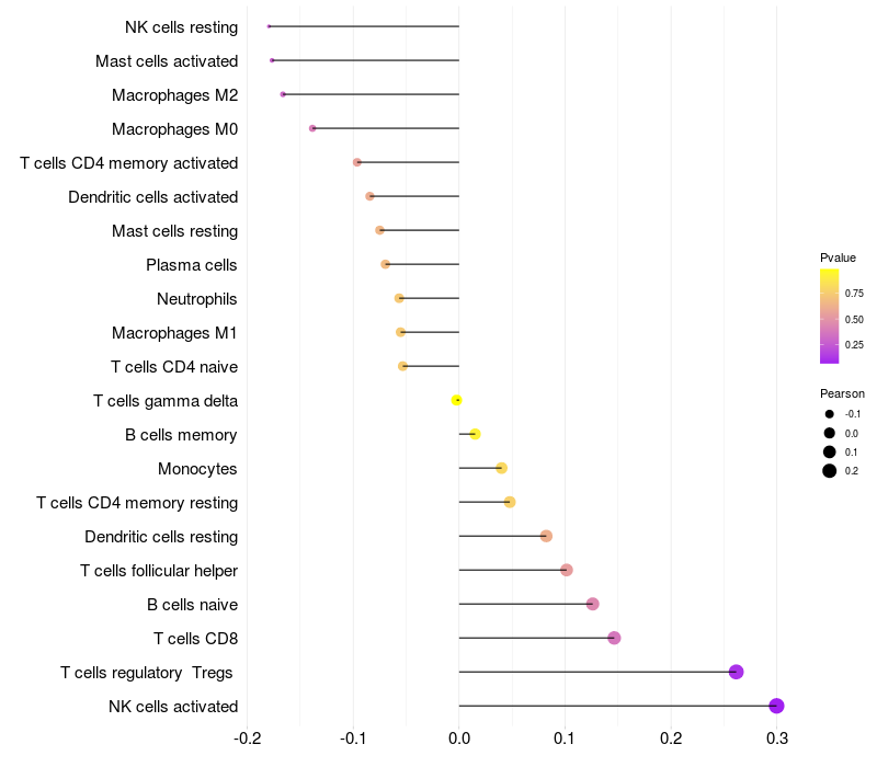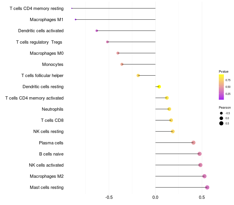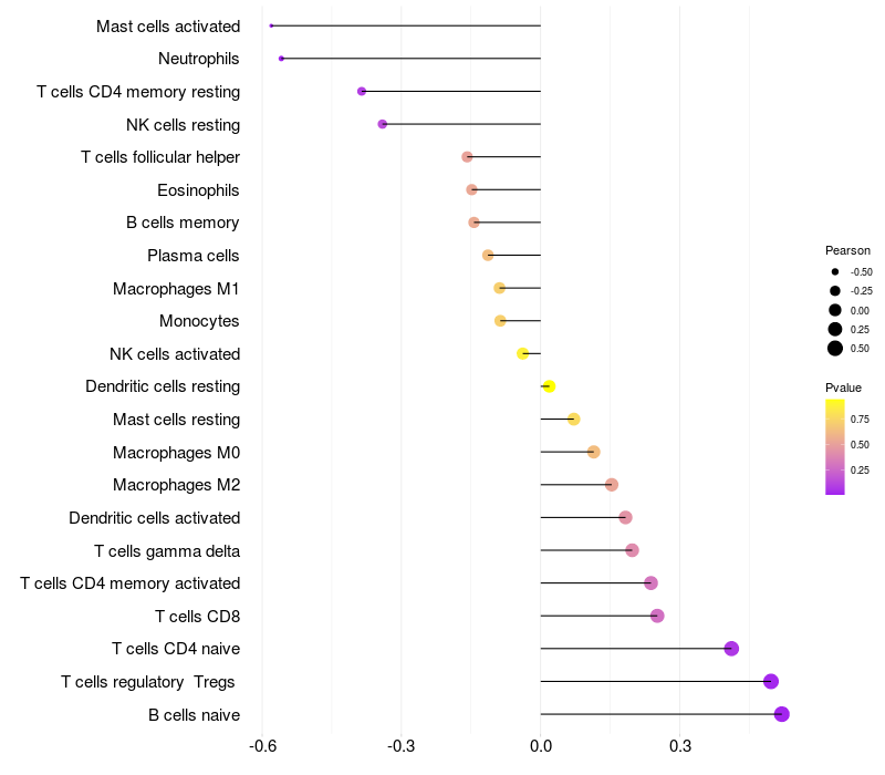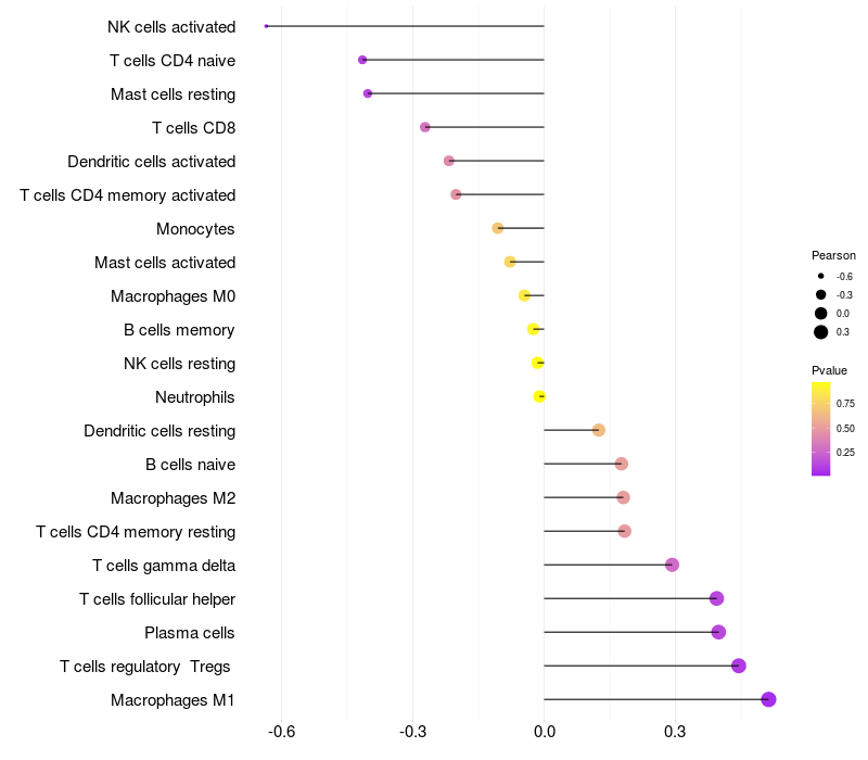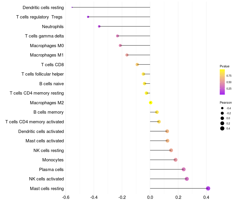 HeatMap of cell type fractions in all samples Lollipop of ZNF99 expression and immune infiltrating cell level correlation result in HPV+ samples