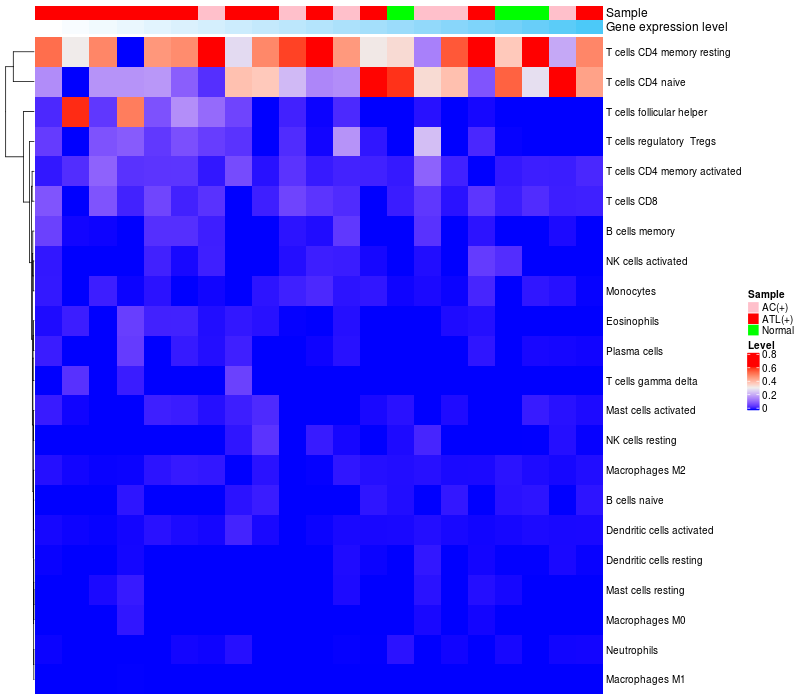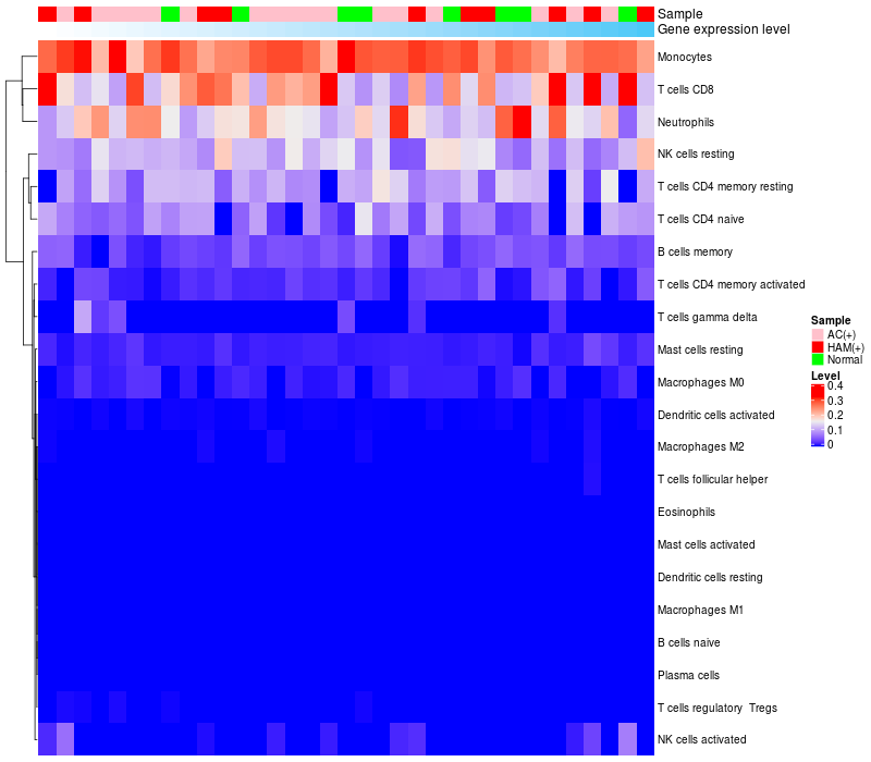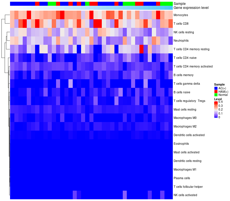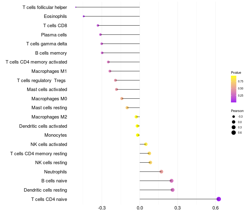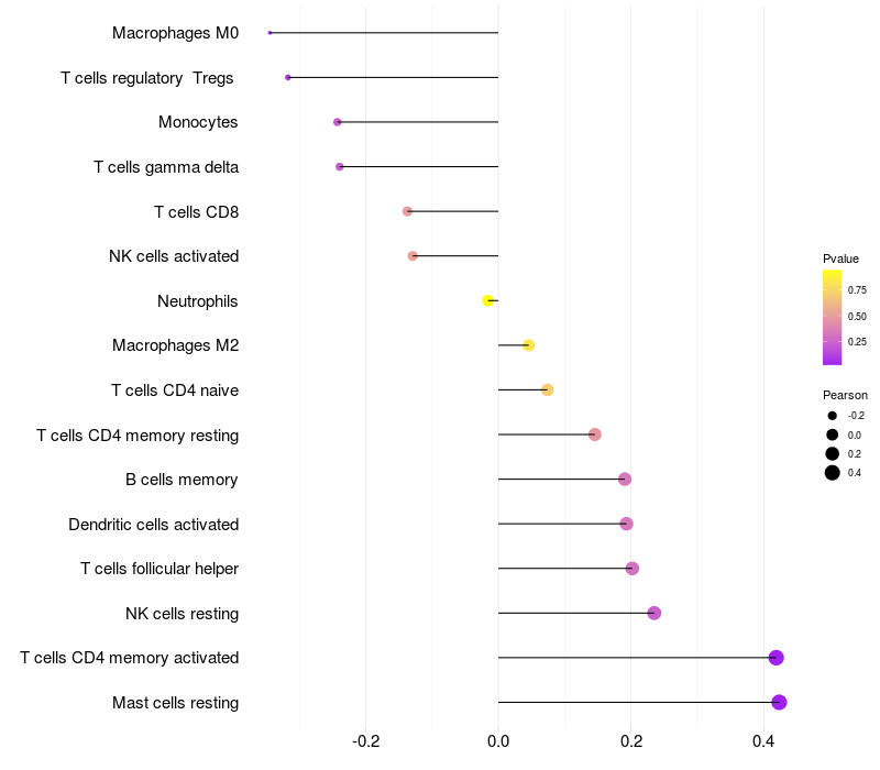 Lollipop of ZNRF3 expression and immune infiltrating cell level correlation result in HTLV1+ samples