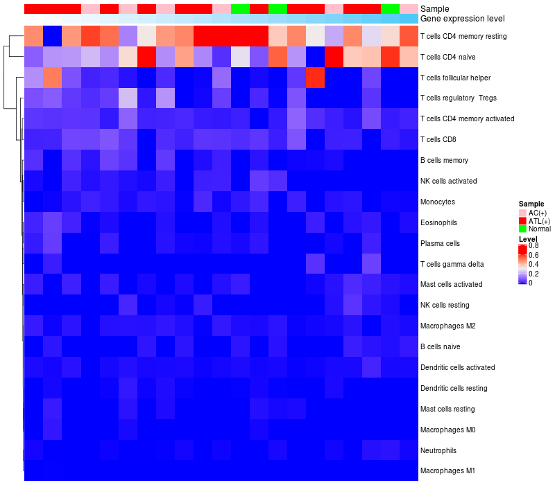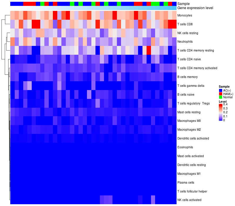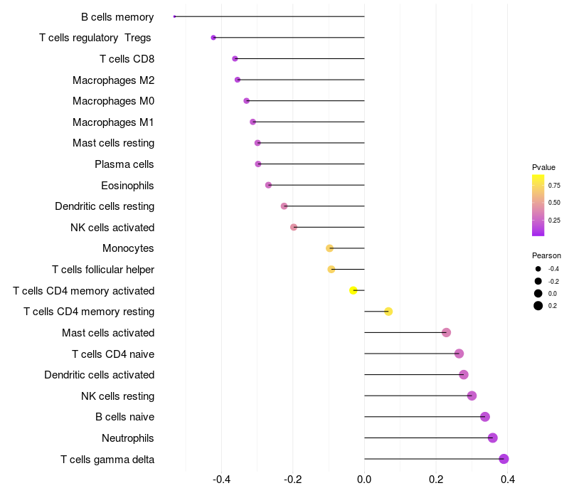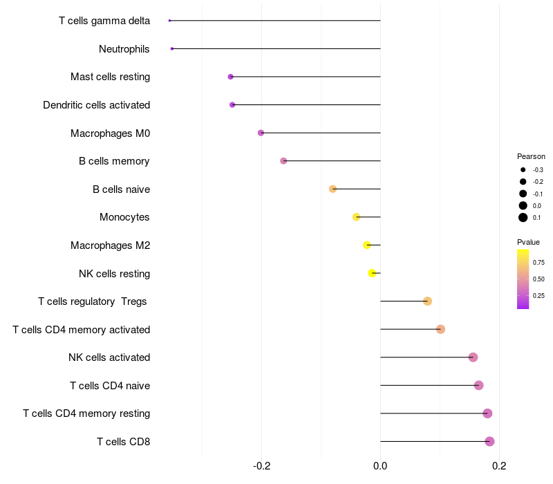 Relationship between gene expression and immune infiltrating cell level