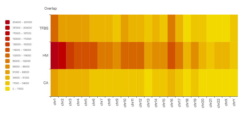 Click to see statistics heatmap of VIS-Factor Overlap in the human genome of HTLV1