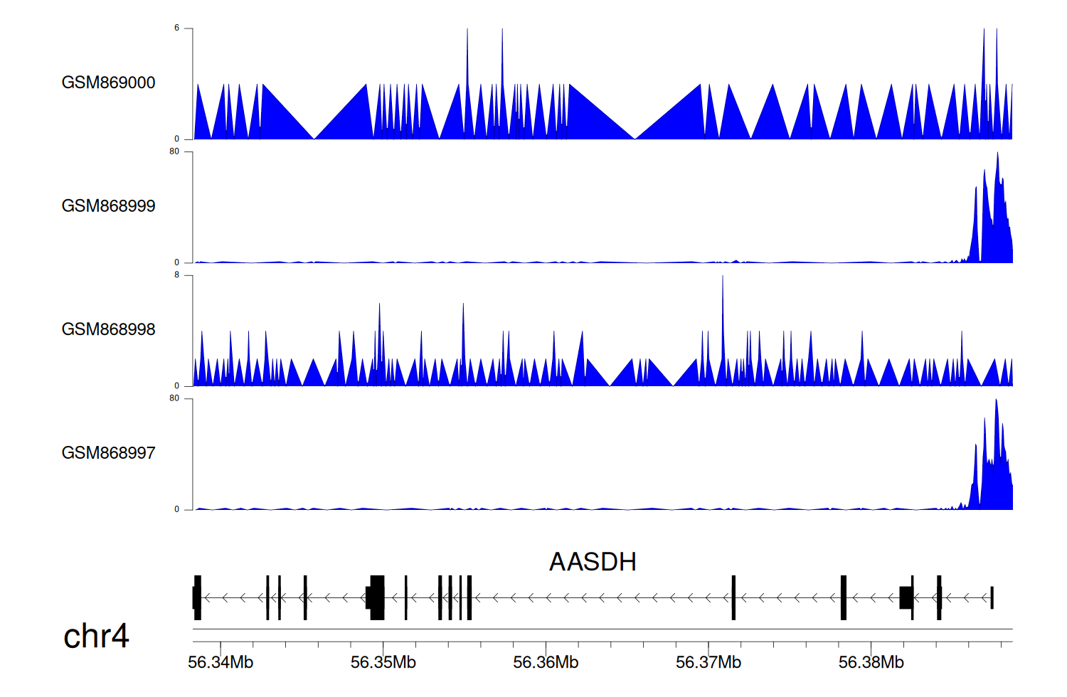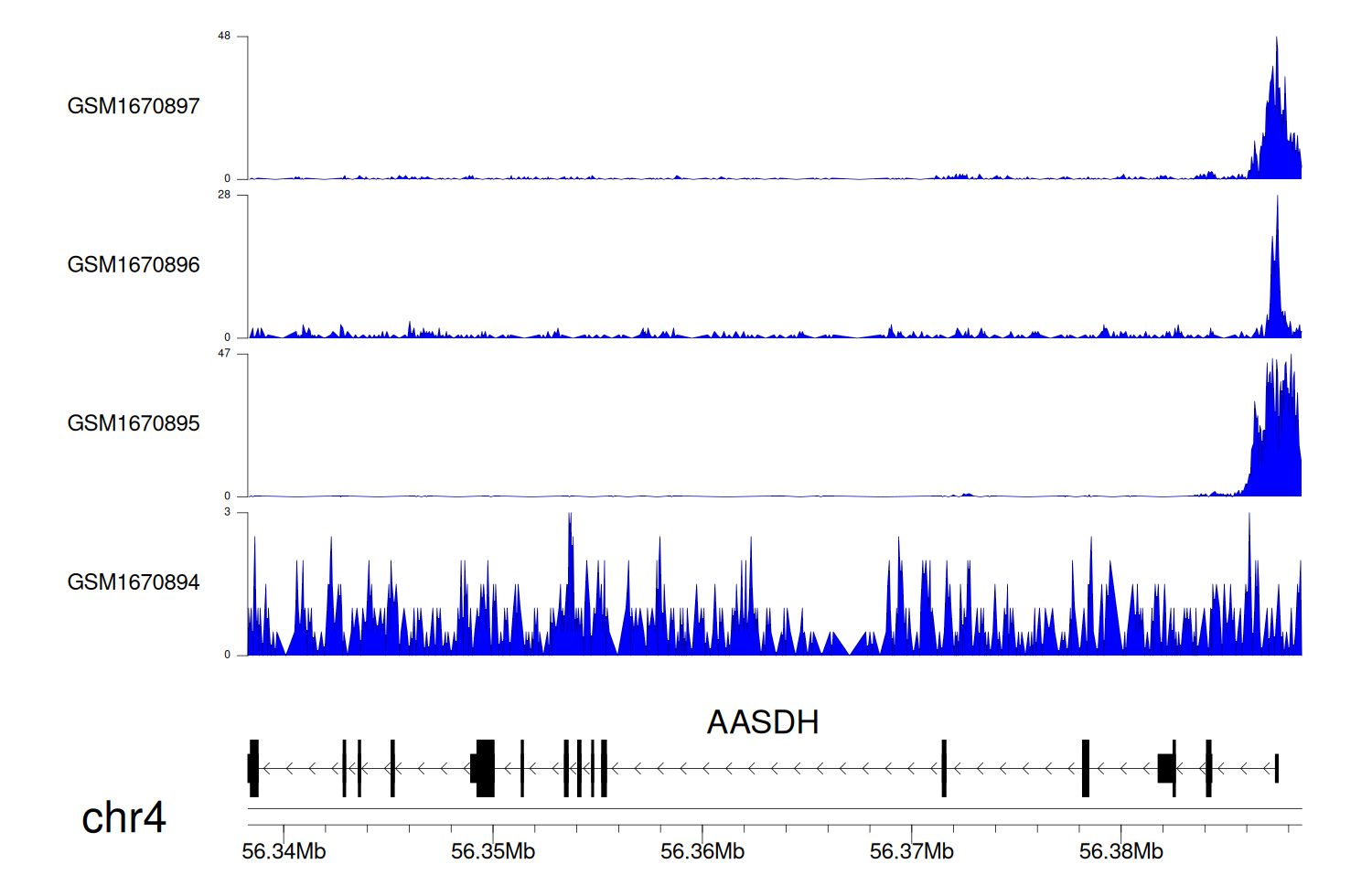 > Dataset: GSE35465 - AASDH peak across samples