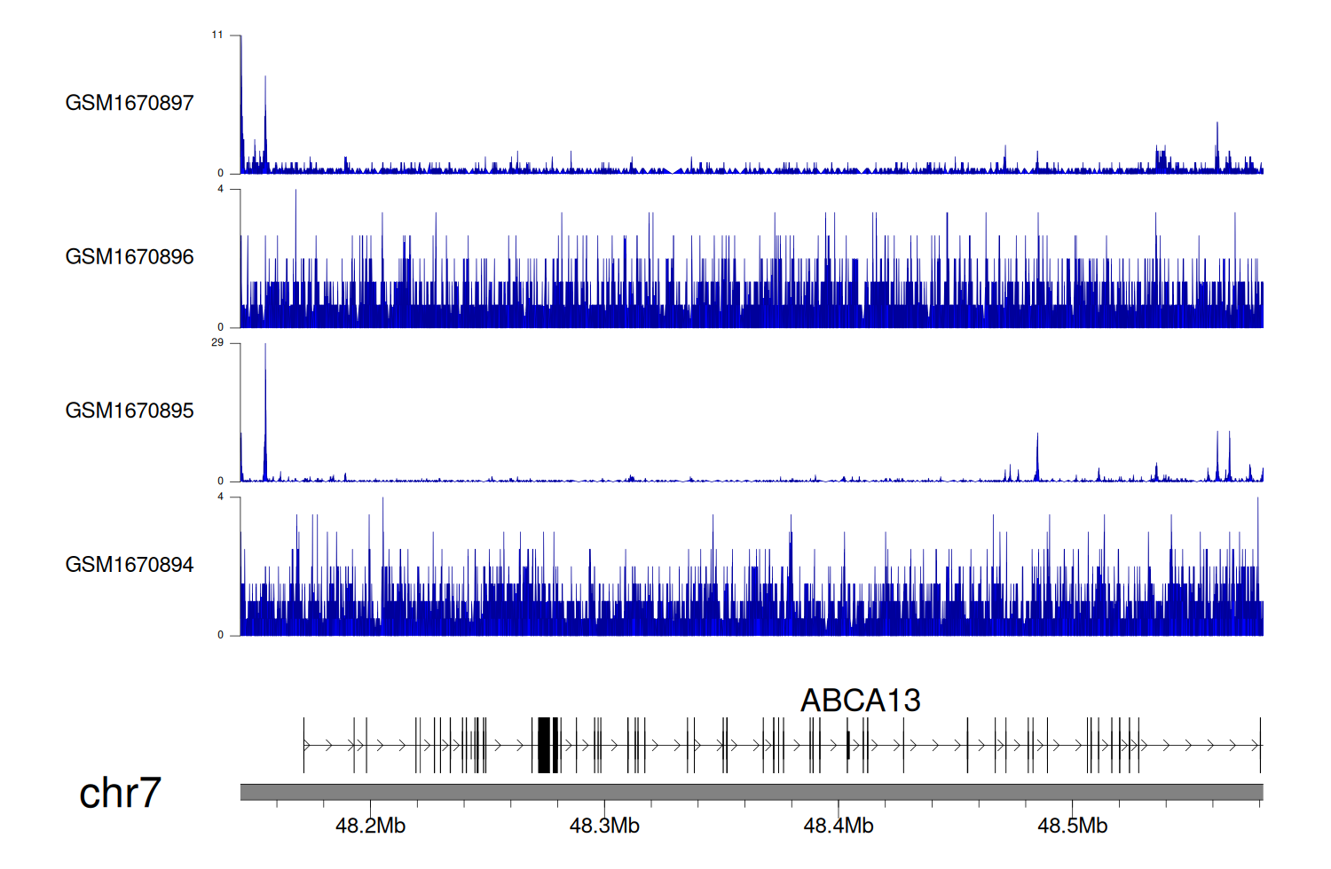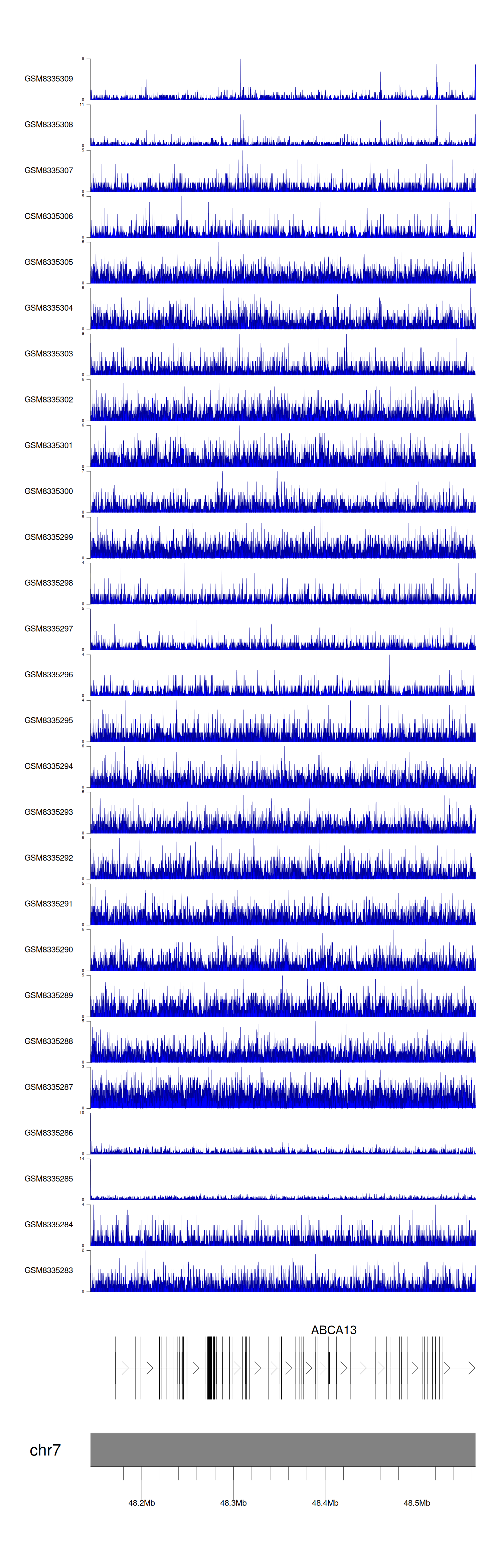 > Dataset: GSE270130 - ABCA13 peak across samples