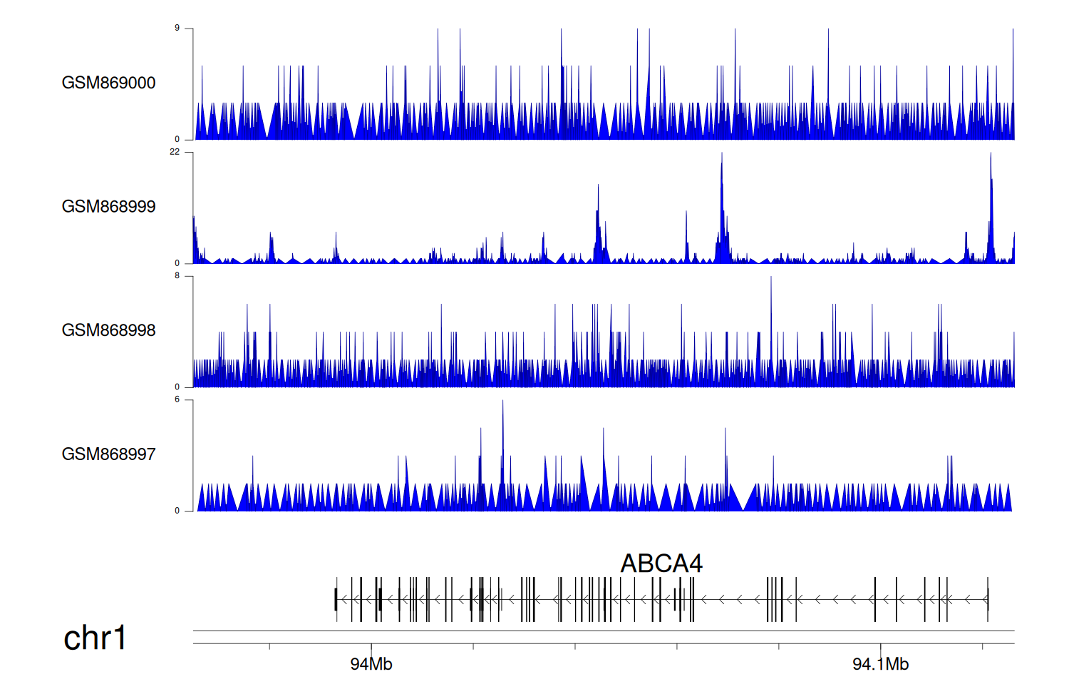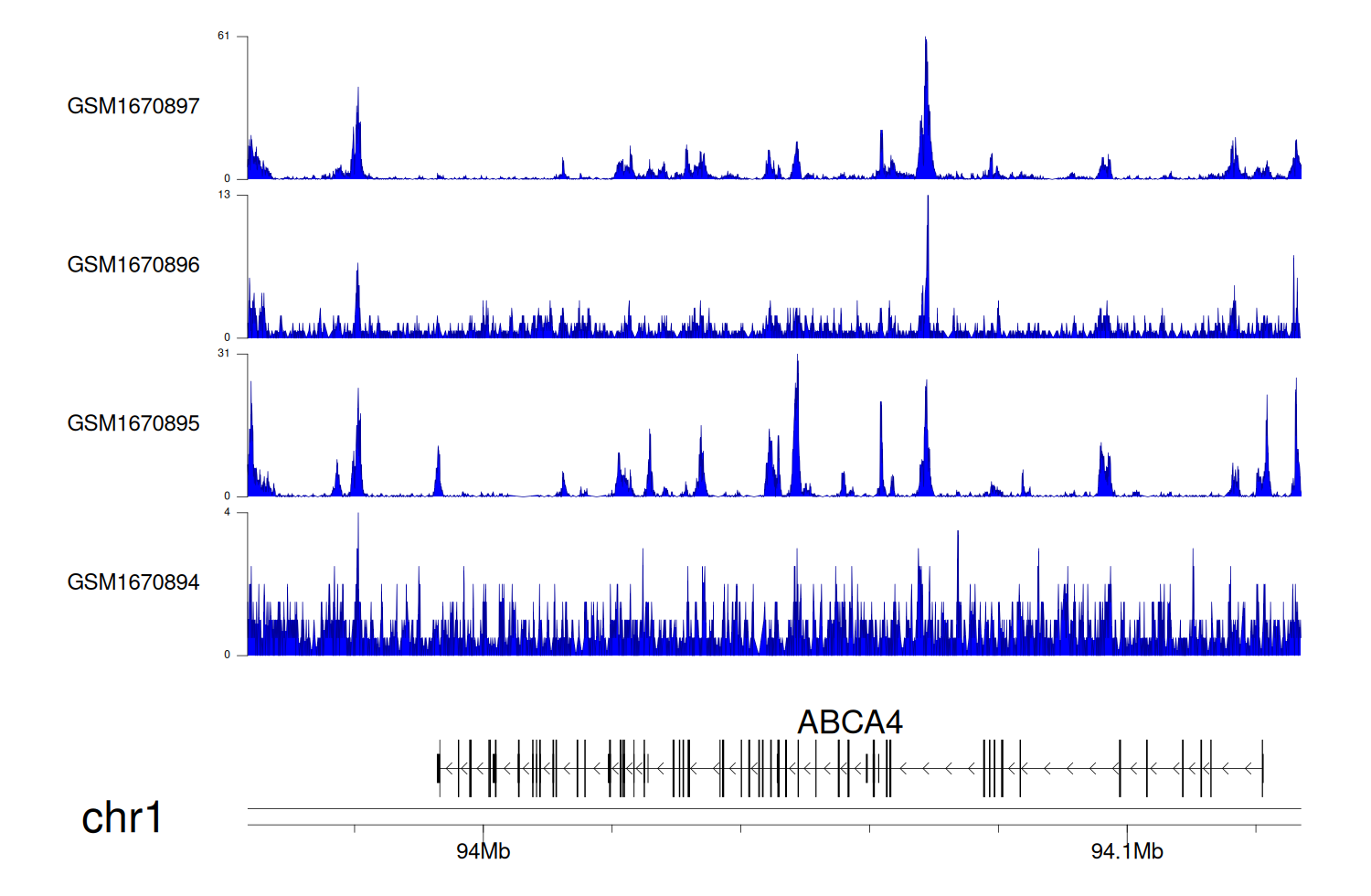 > Dataset: GSE68402 - ABCA4 peak across samples
