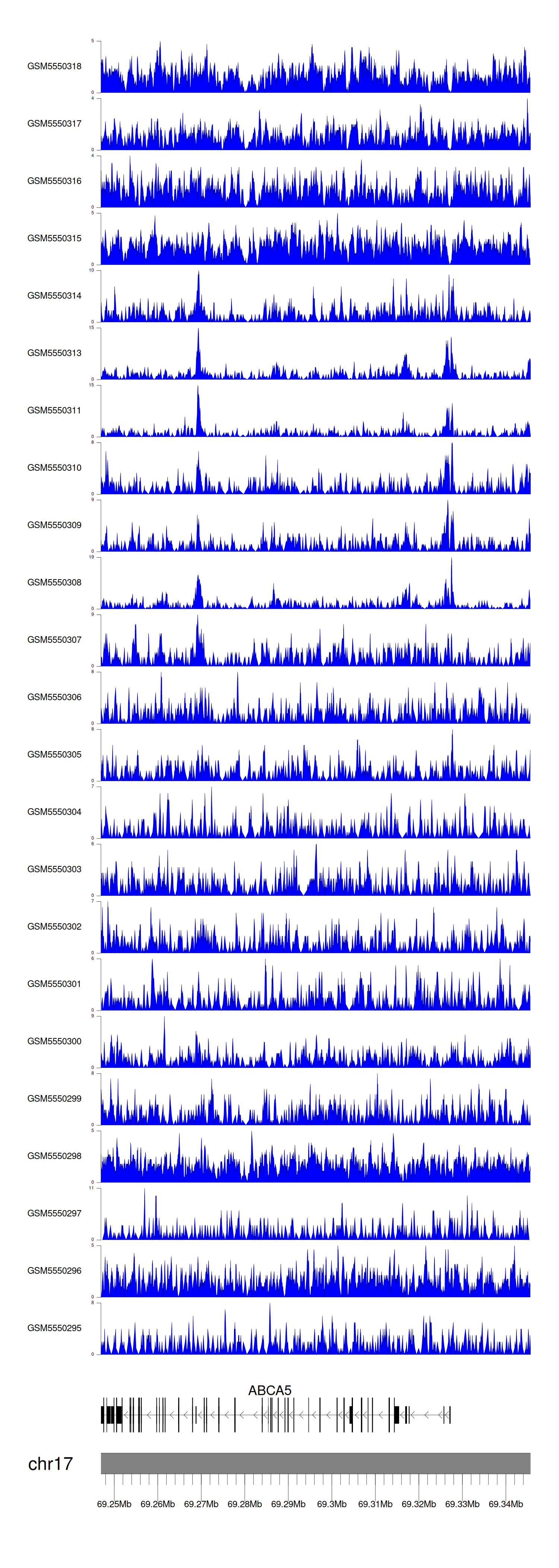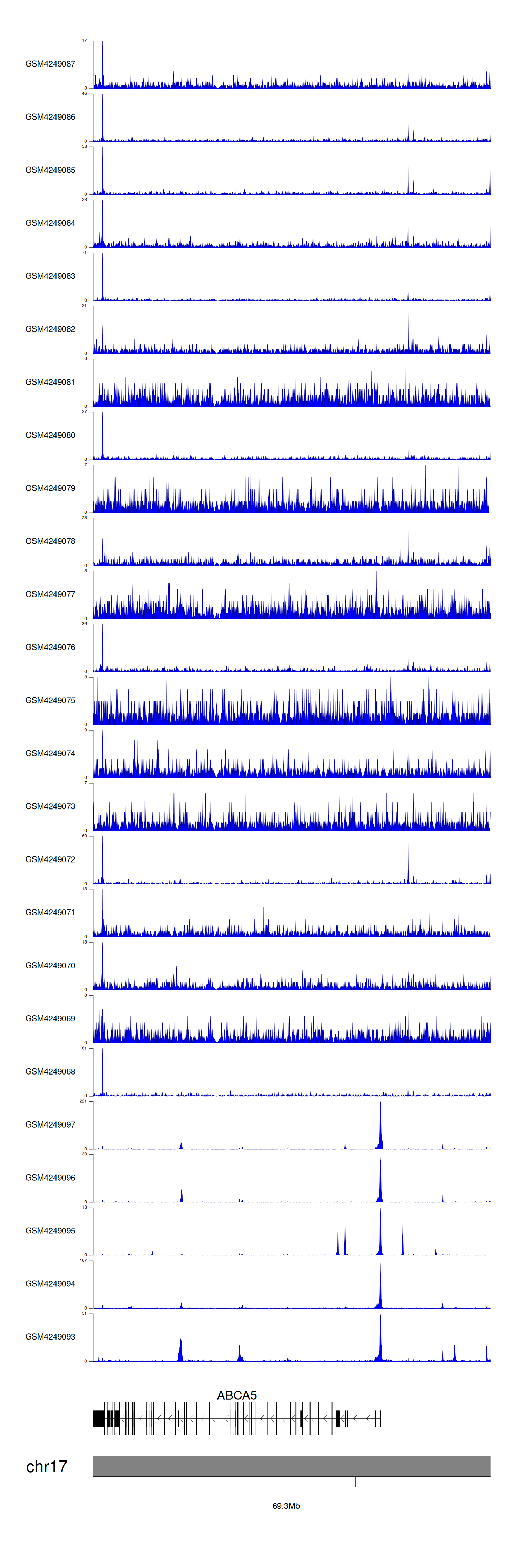 > Dataset: GSE143026 - ABCA5 peak across samples
