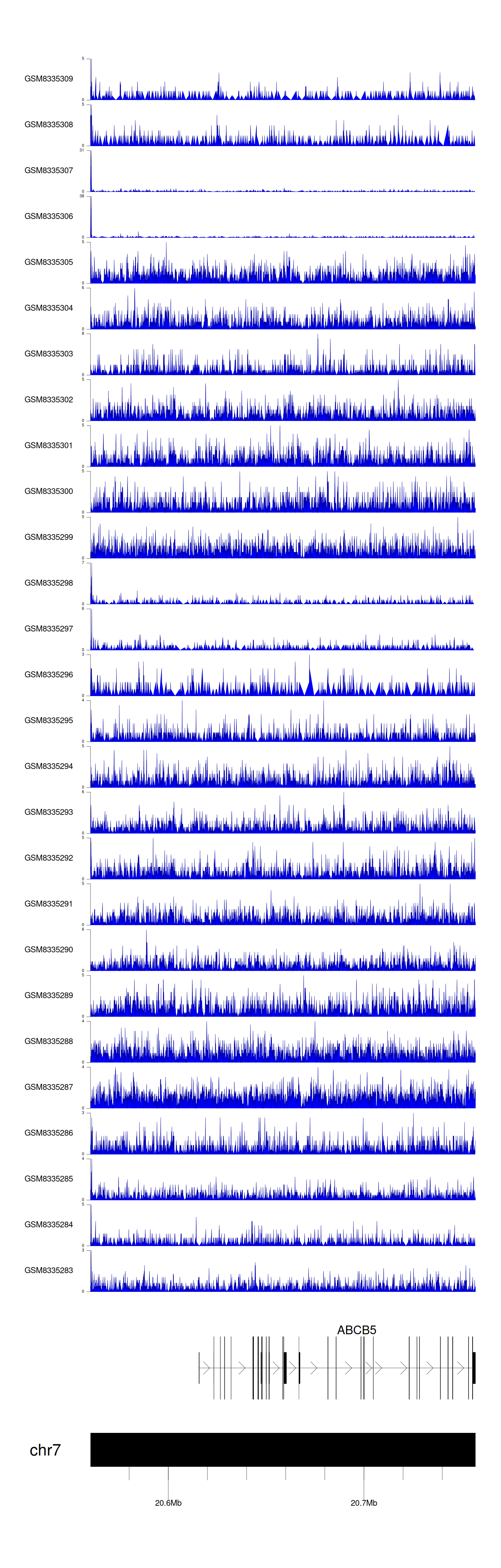 > Dataset: GSE131257 - ABCB5 peak across samples