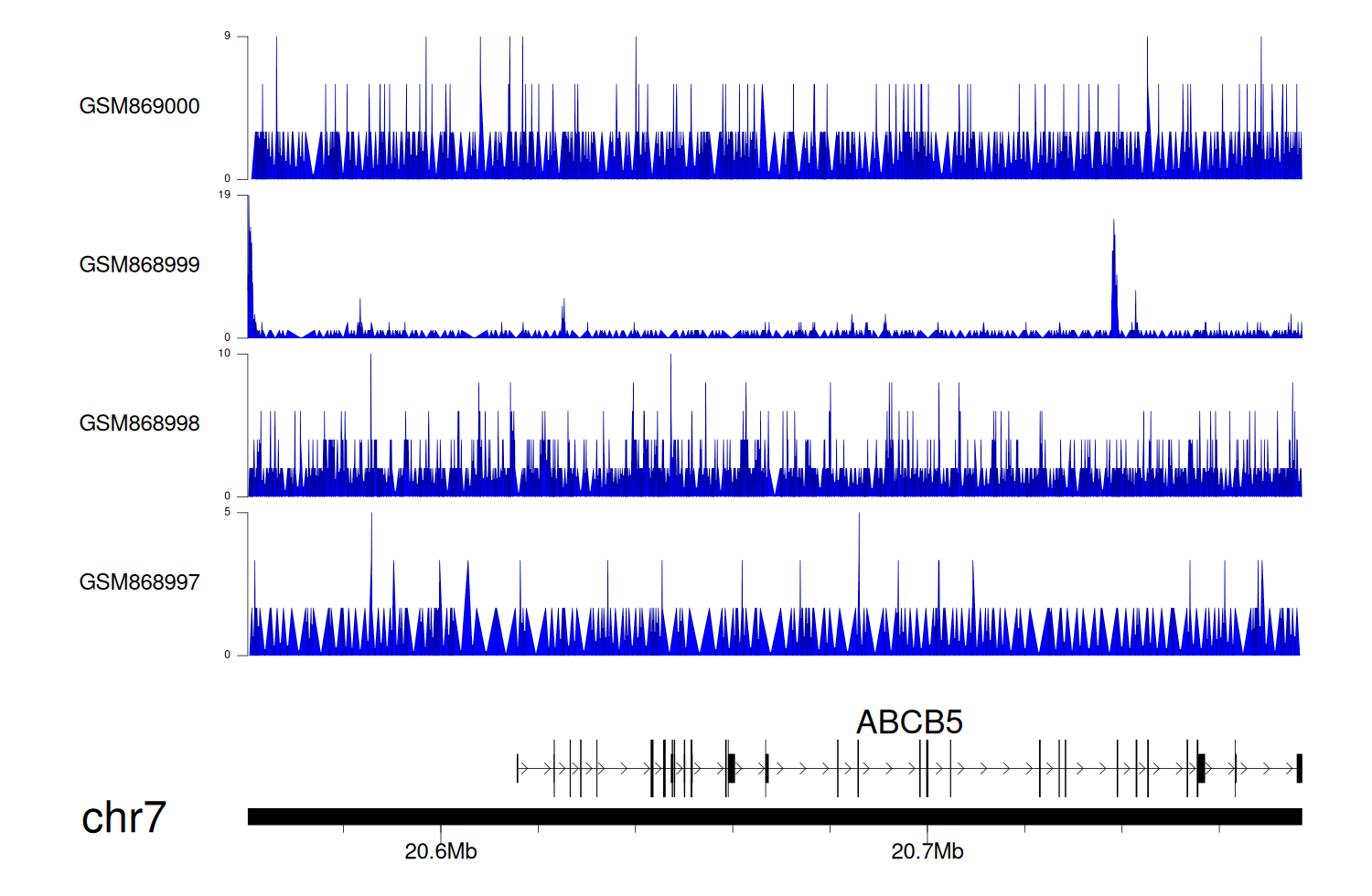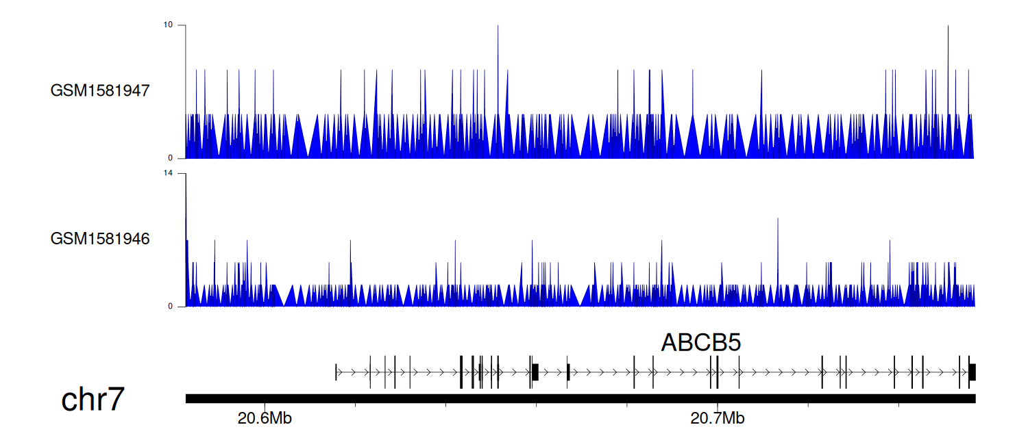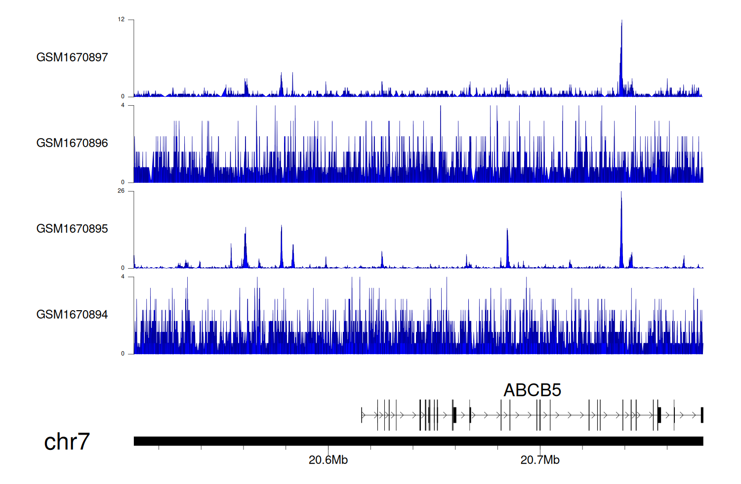 > Dataset: GSE64877 - ABCB5 peak across samples