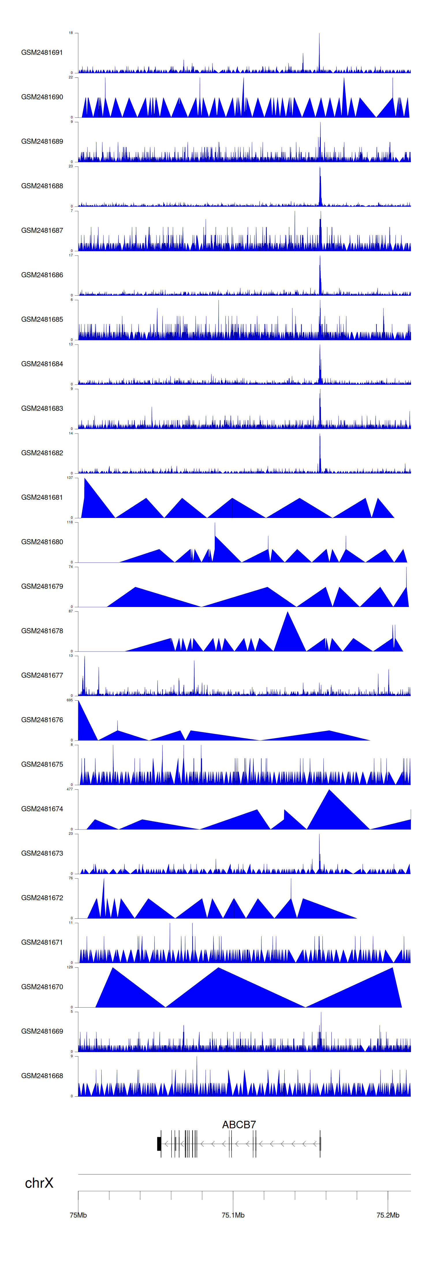 > Dataset: GSE94732 - ABCB7 peak across samples