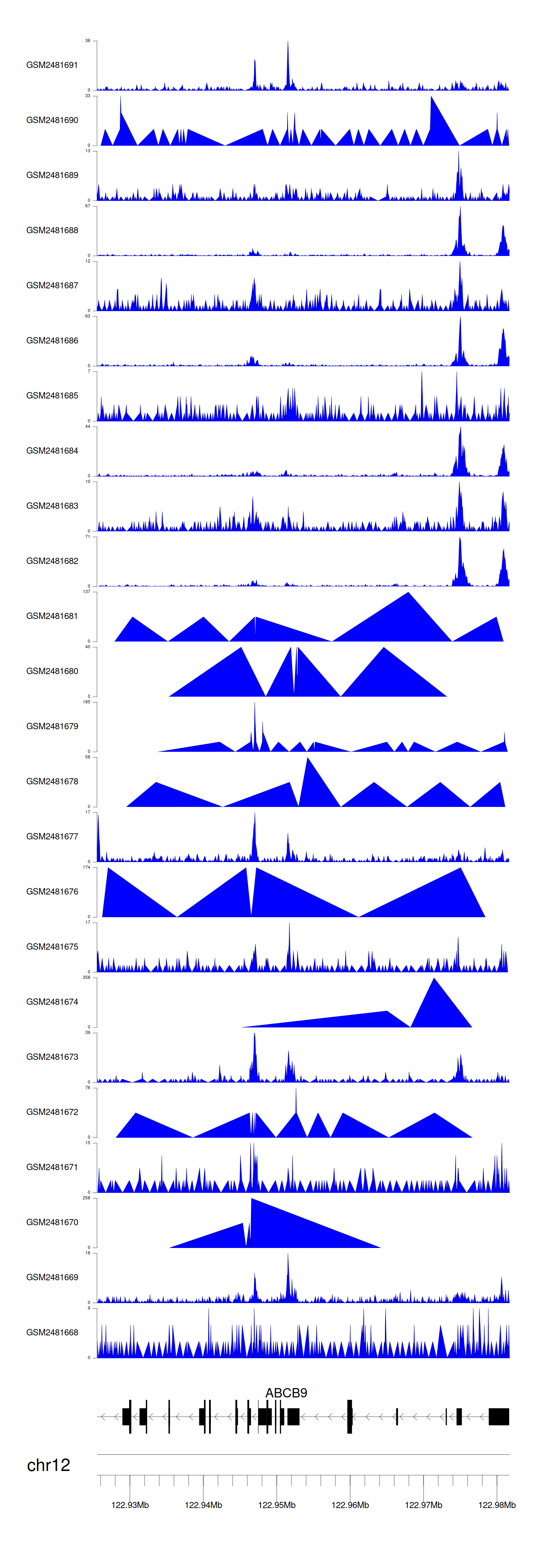> Dataset: GSE94732 - ABCB9 peak across samples