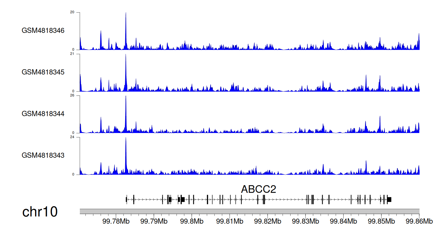> Dataset: GSE270130 - ABCC2 peak across samples