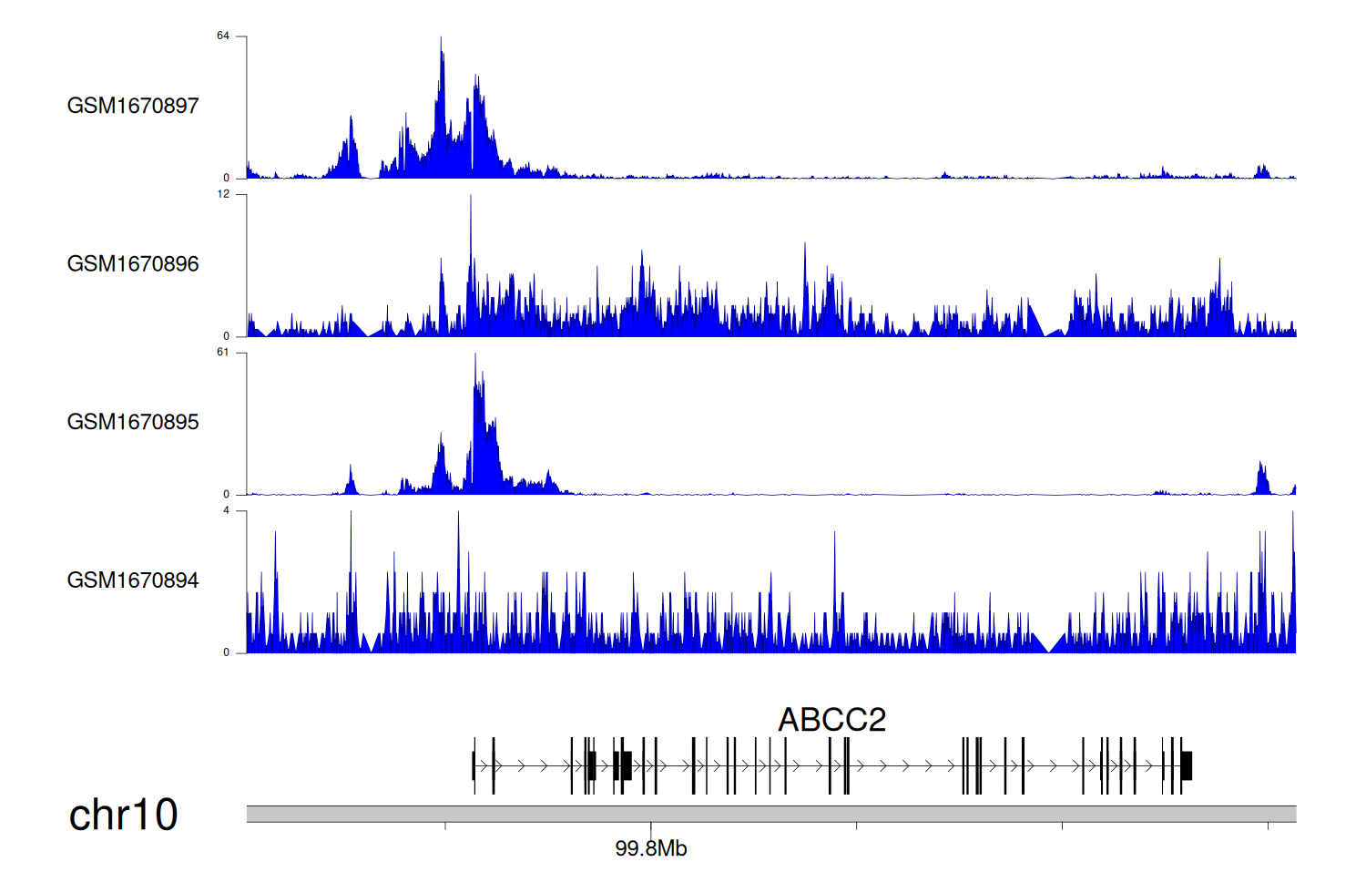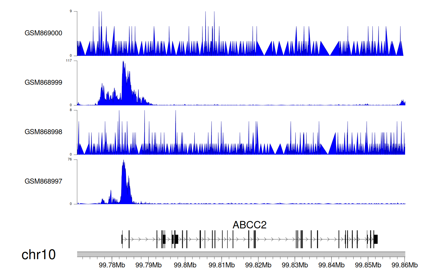 > Dataset: GSE68402 - ABCC2 peak across samples
