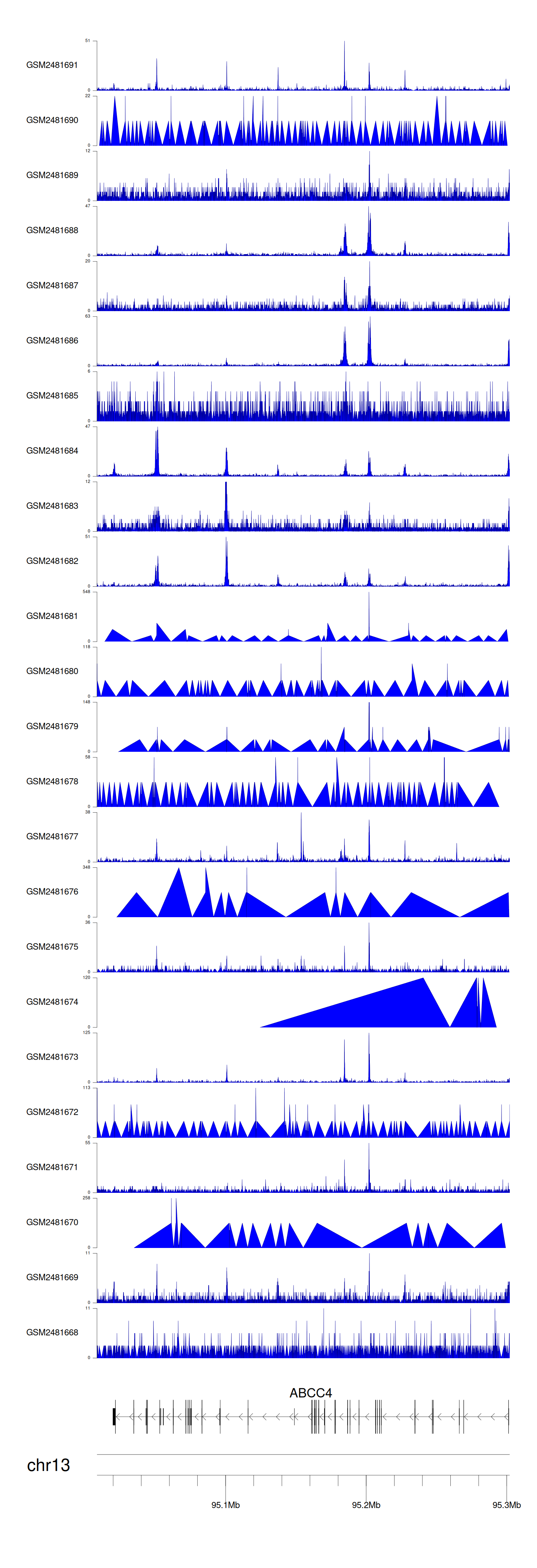 > Dataset: GSE94732 - ABCC4 peak across samples