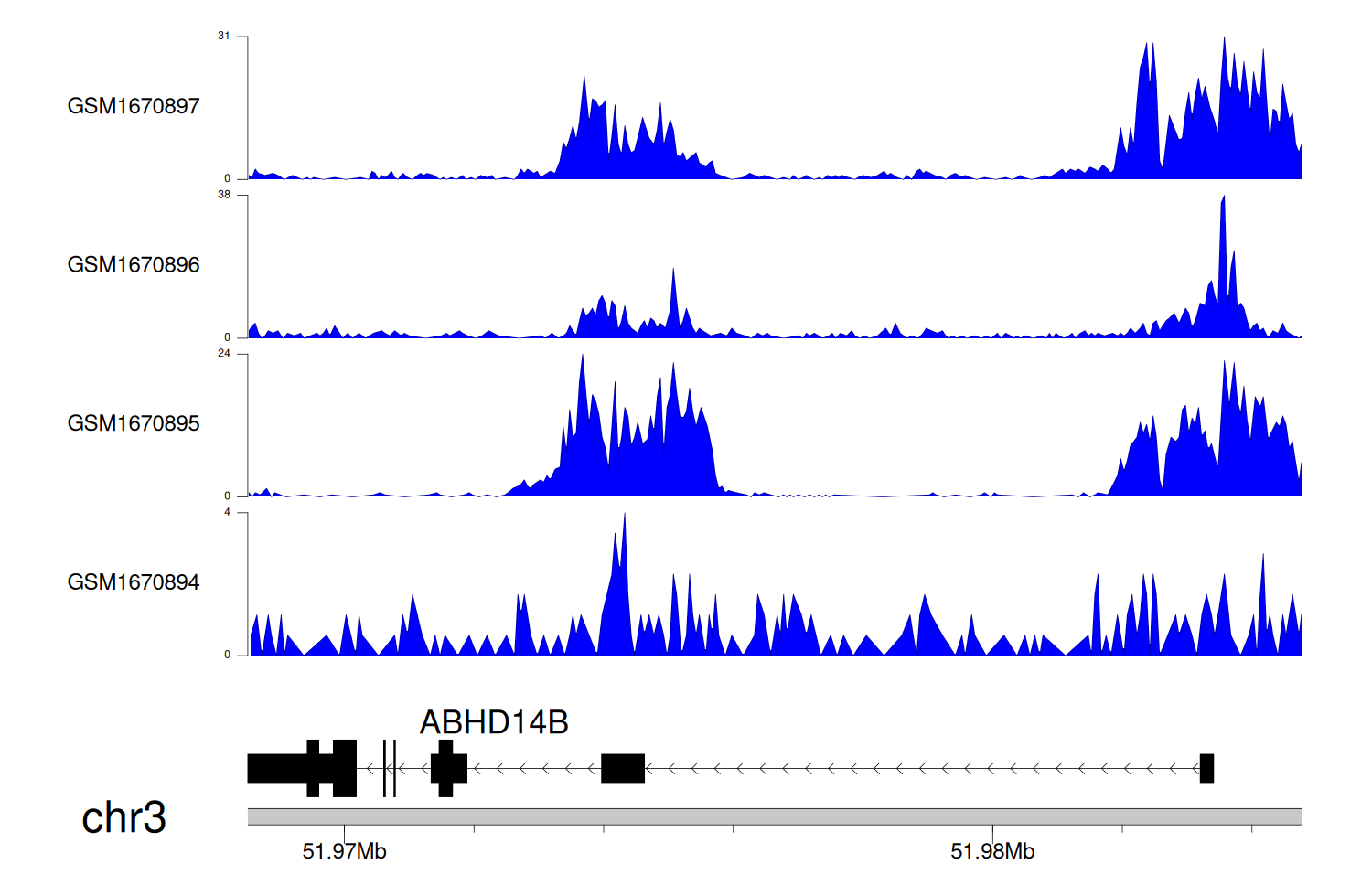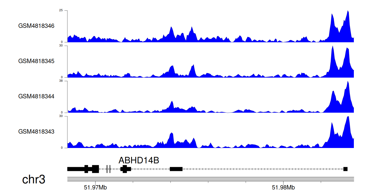 > Dataset: GSE270130 - ABHD14B peak across samples