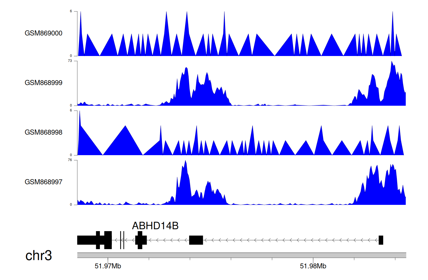 > Dataset: GSE68402 - ABHD14B peak across samples