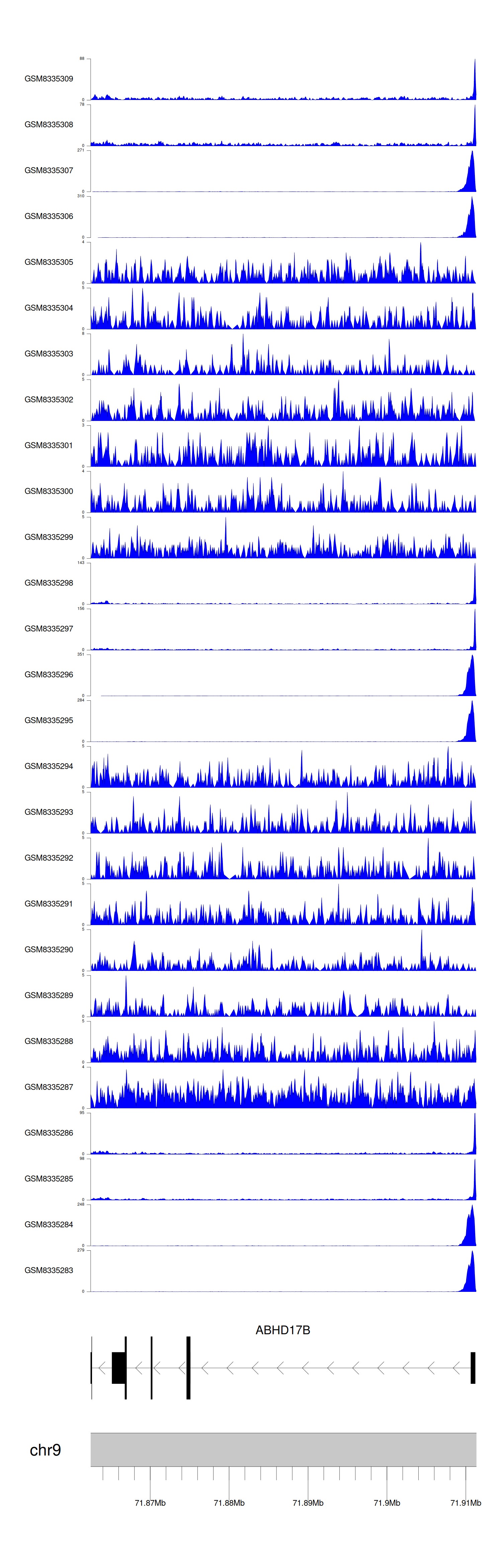 > Dataset: GSE270130 - ABHD17B peak across samples