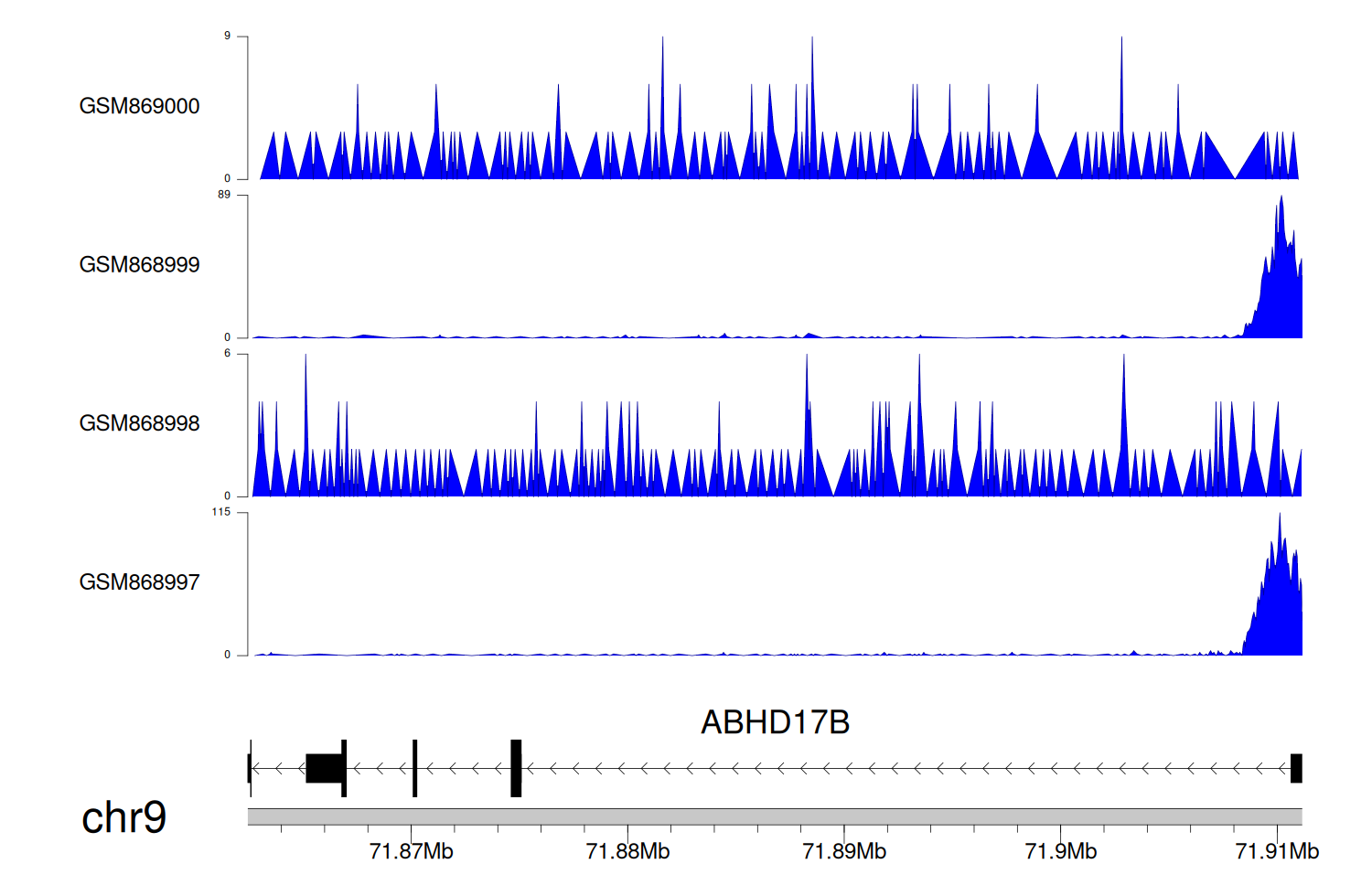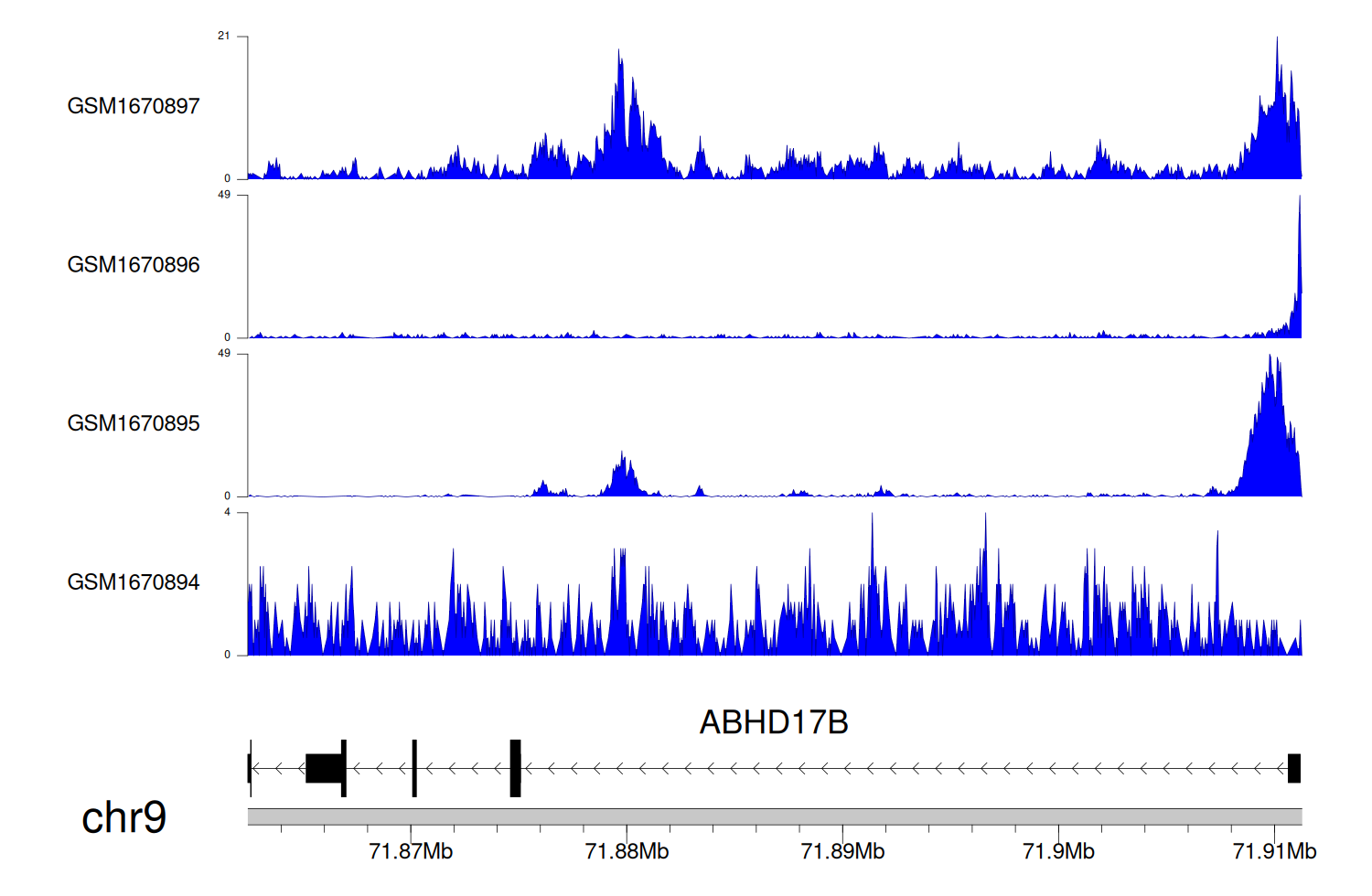 > Dataset: GSE68402 - ABHD17B peak across samples