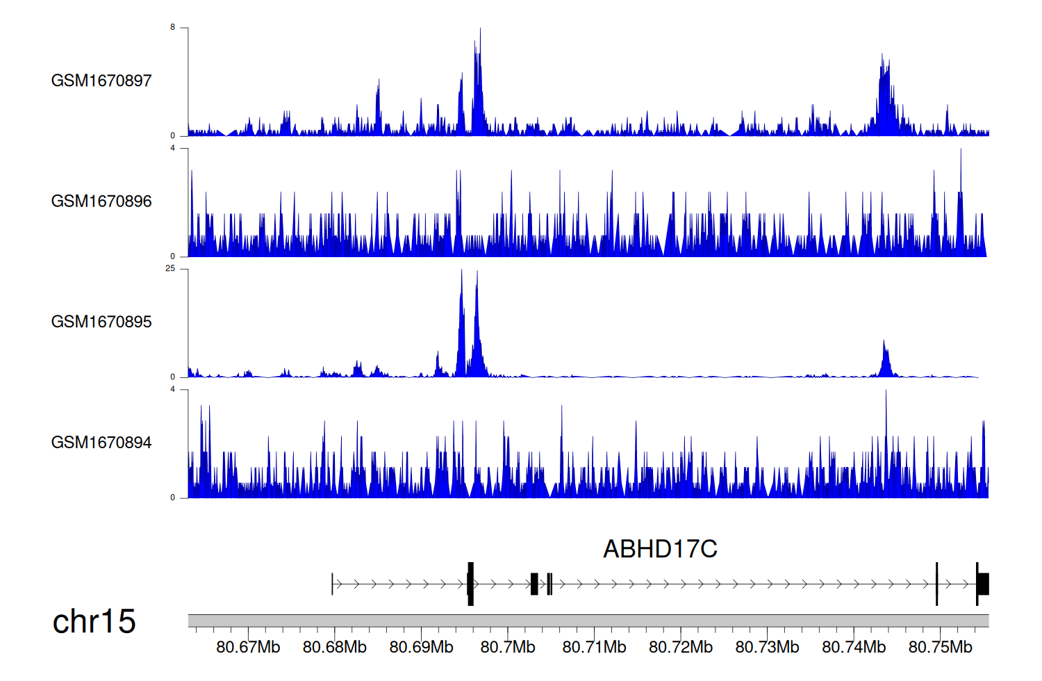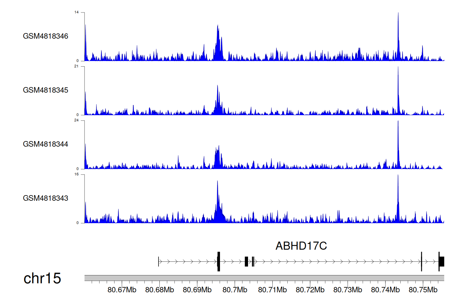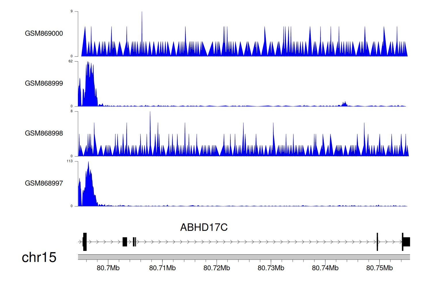 > Dataset: GSE68402 - ABHD17C peak across samples