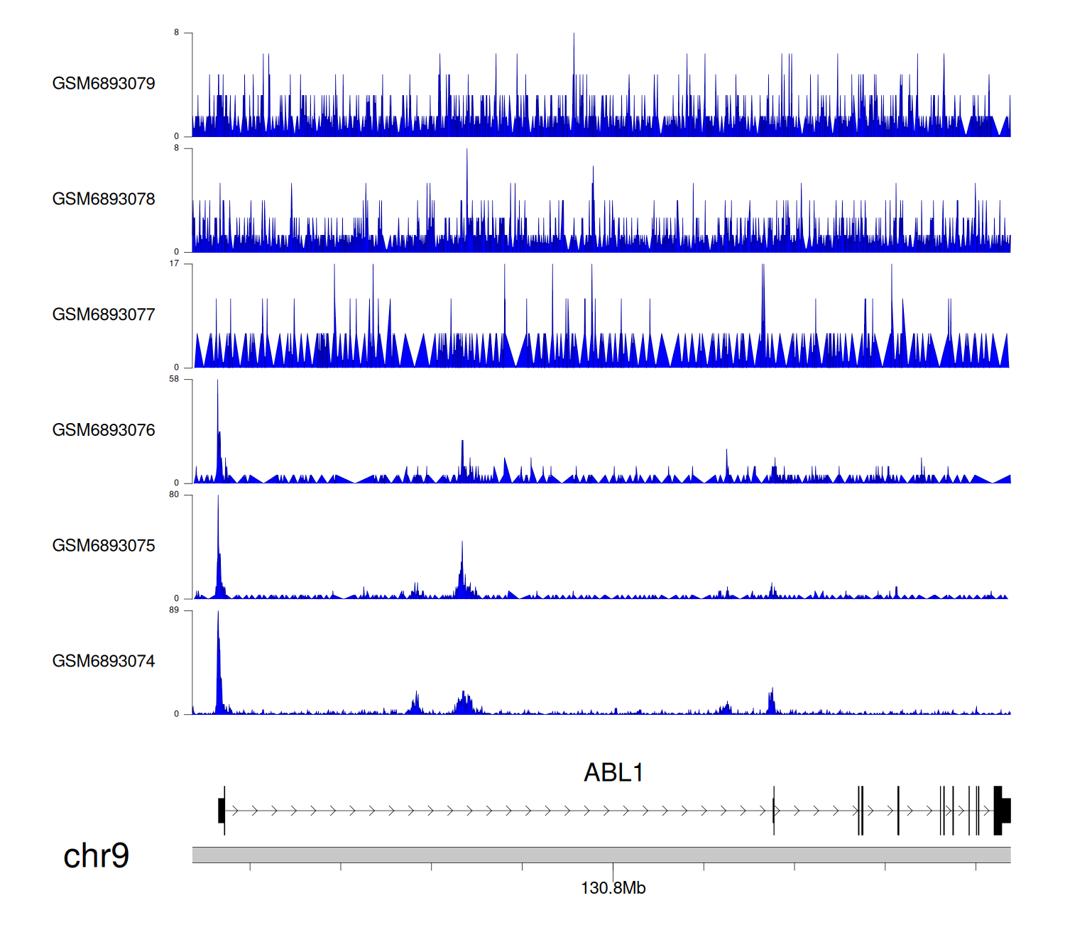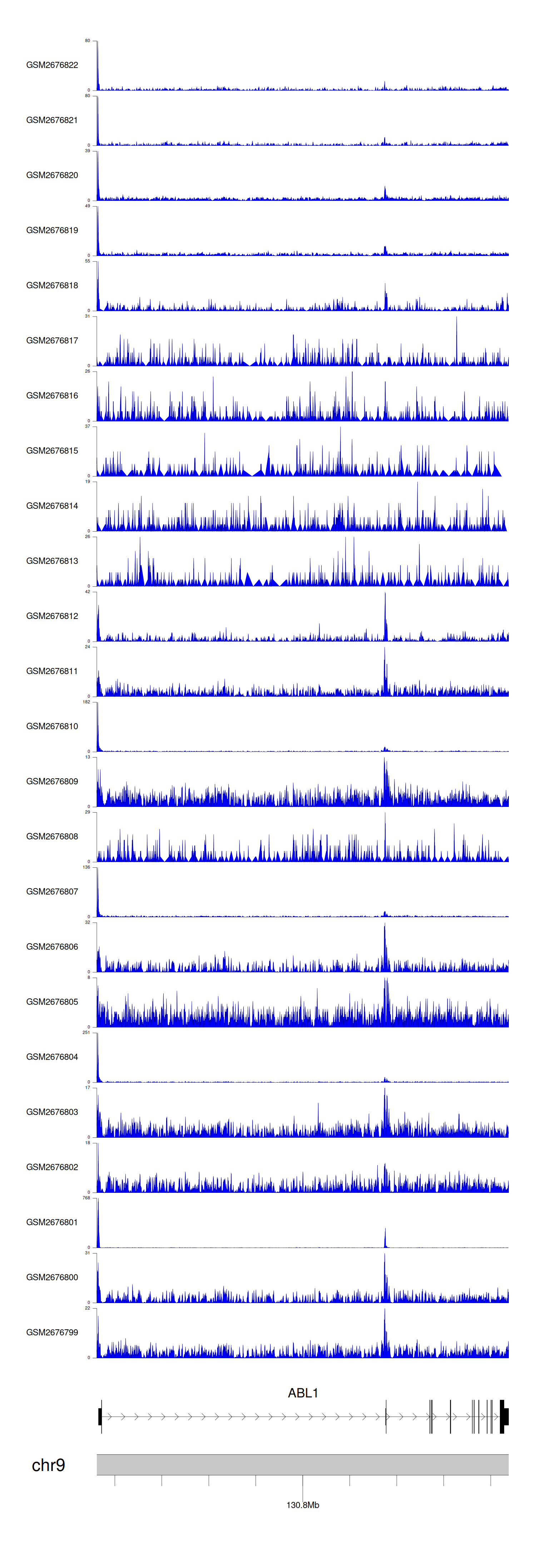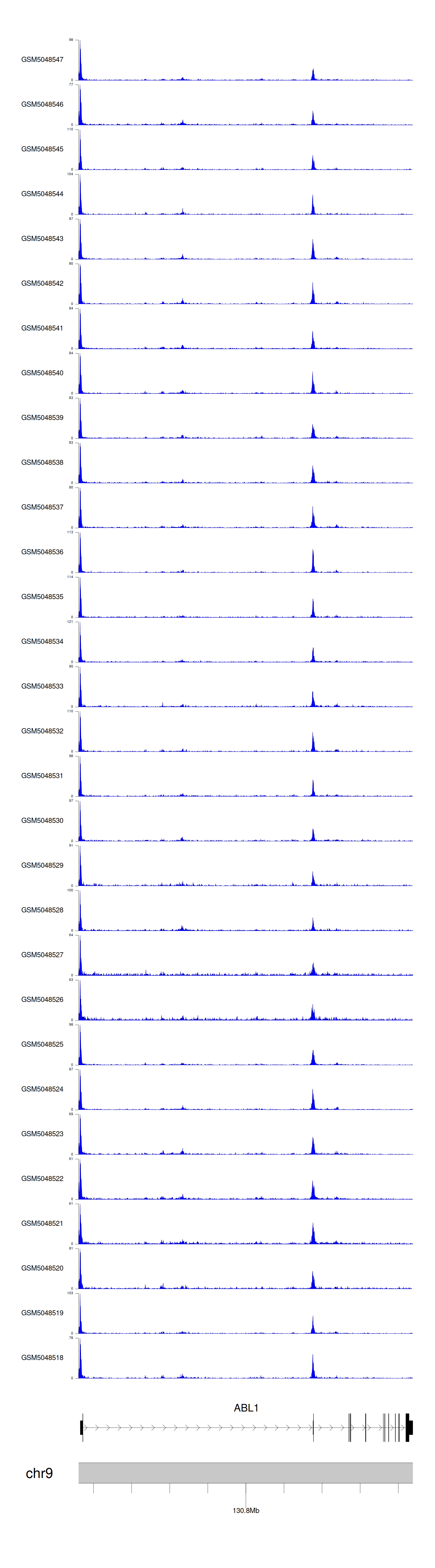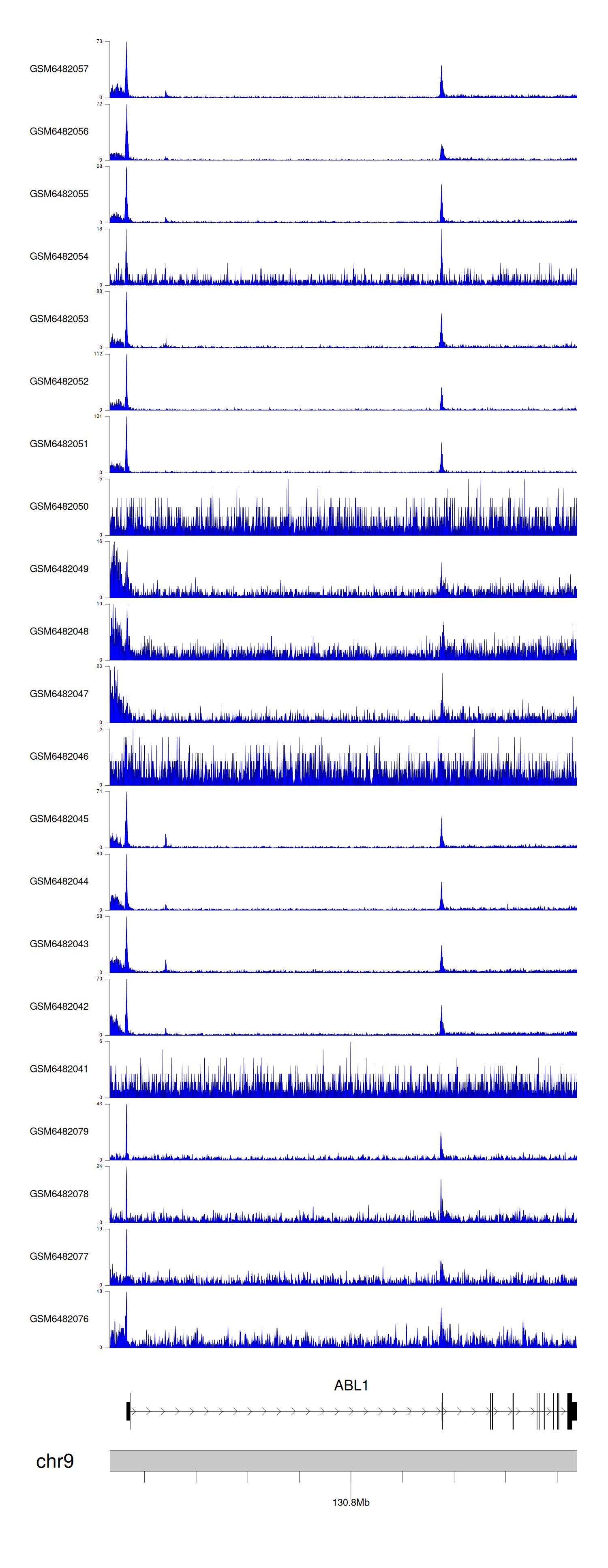 > Dataset: GSE165703 - ABL1 peak across samples