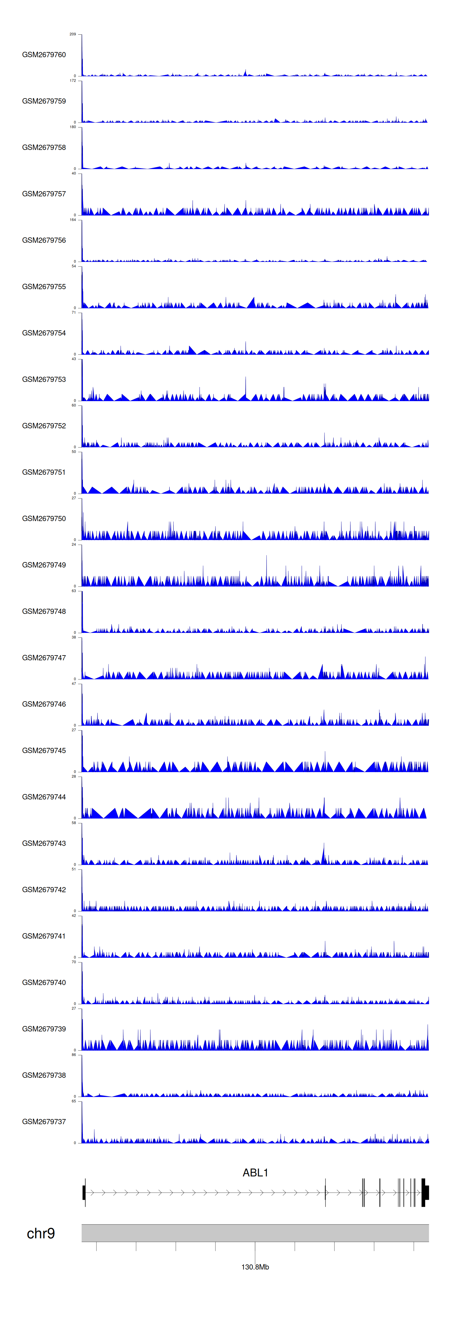 > Dataset: GSE30738 - ABL1 peak across samples