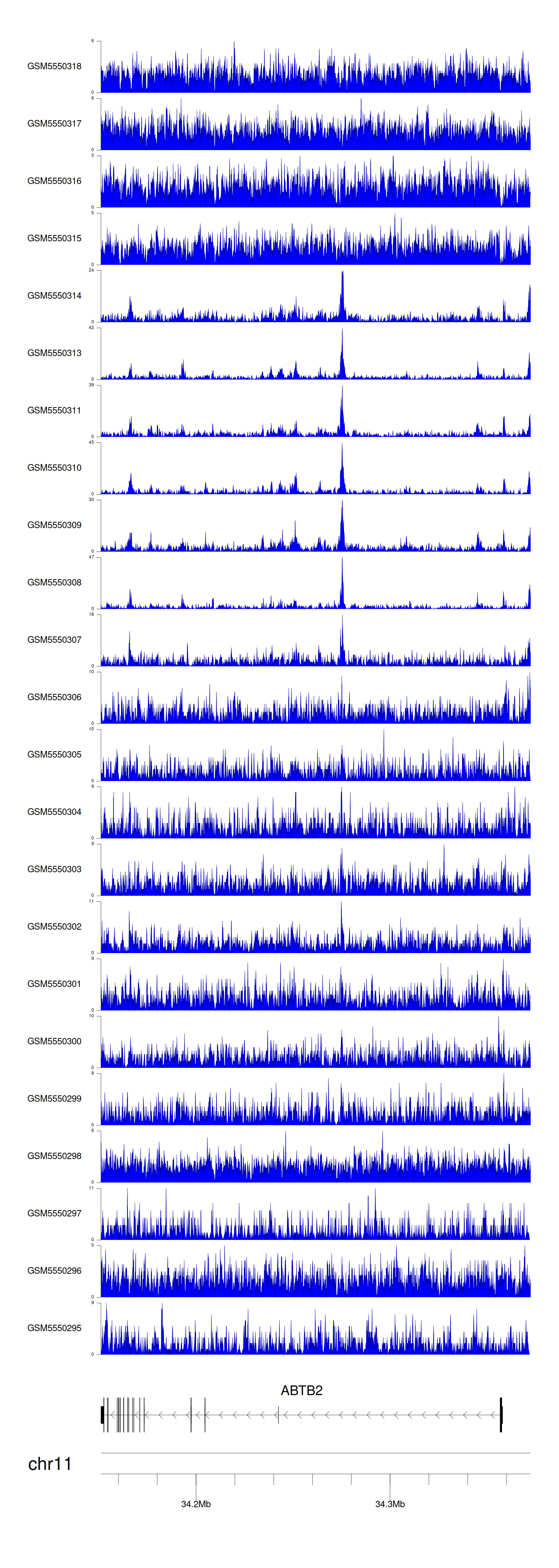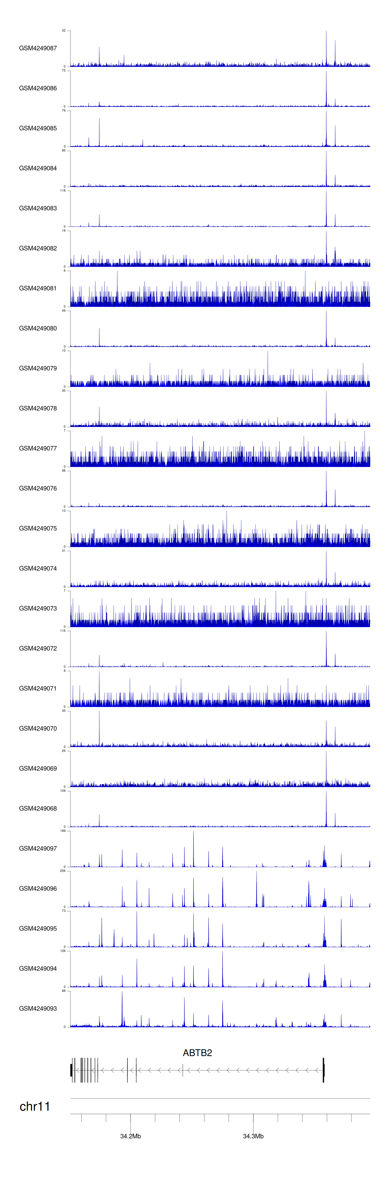 > Dataset: GSE183048 - ABTB2 peak across samples