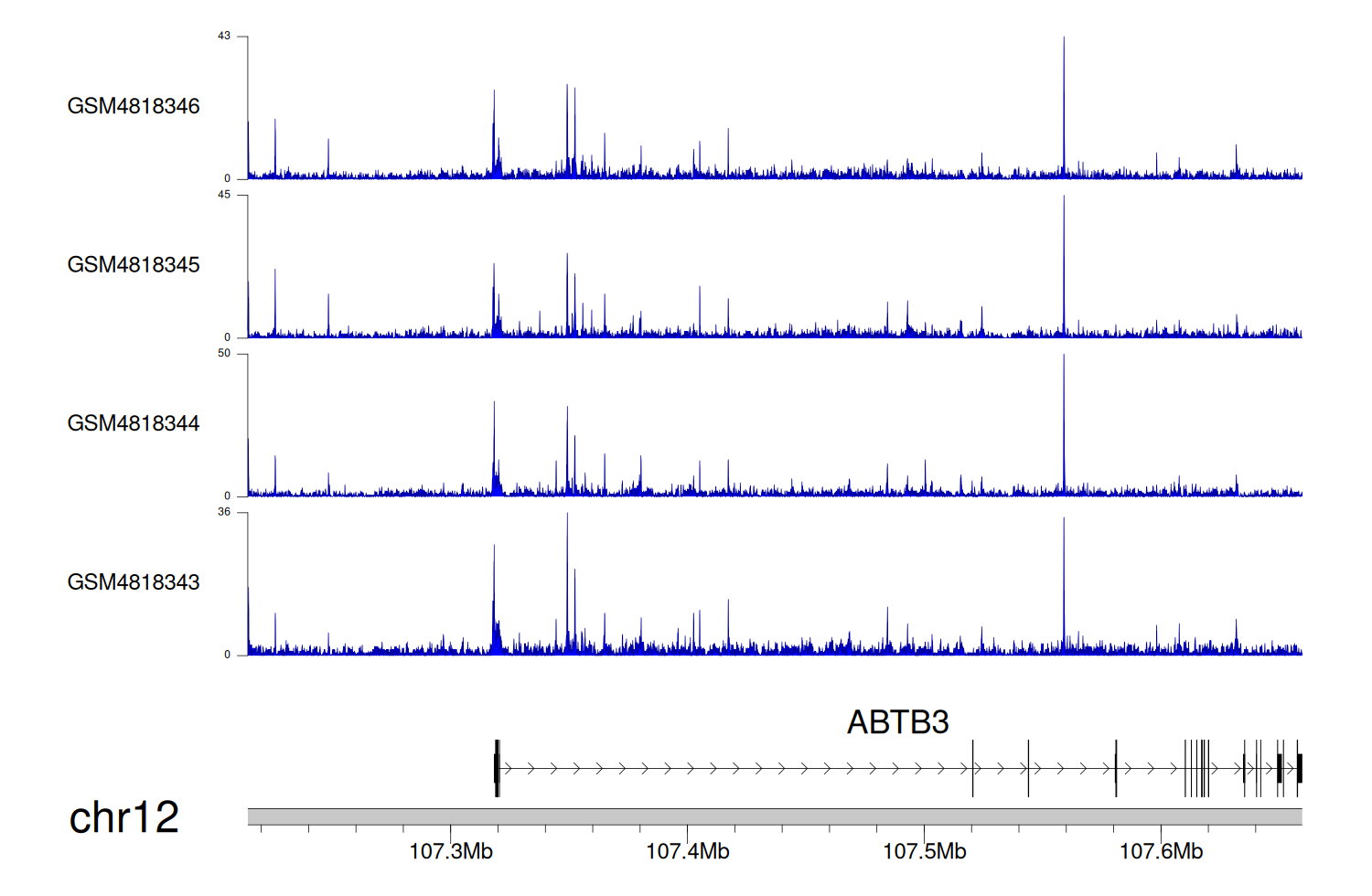> Dataset: GSE131257 - ABTB3 peak across samples