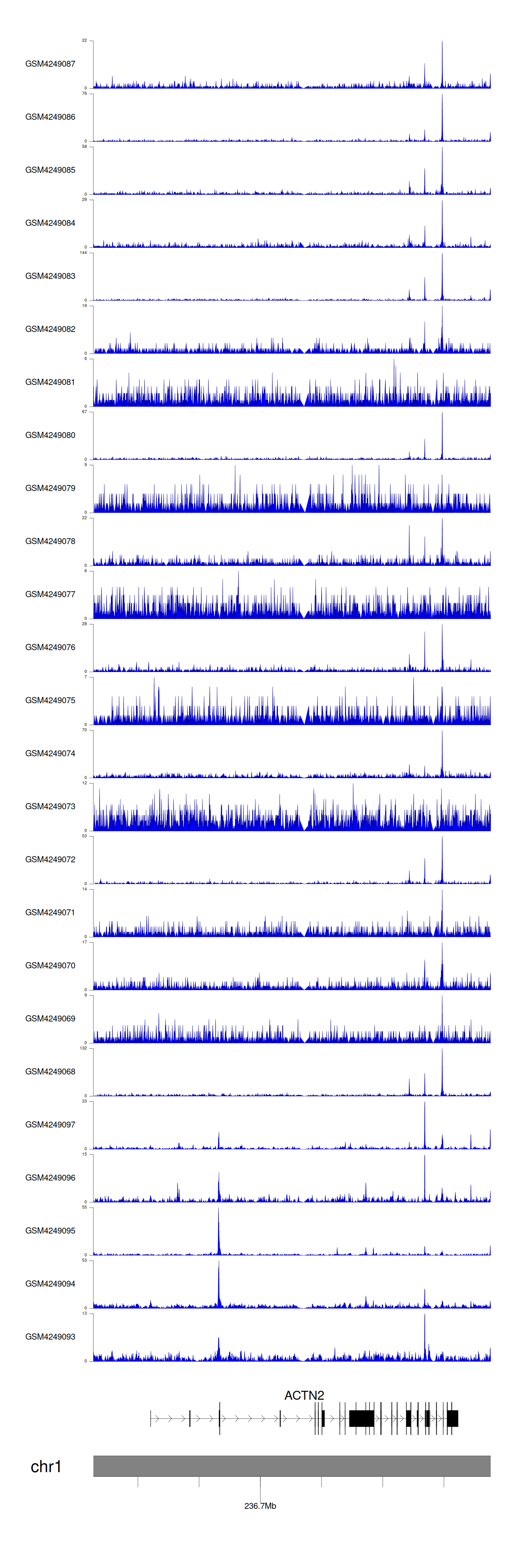 > Dataset: GSE143026 - ACTN2 peak across samples