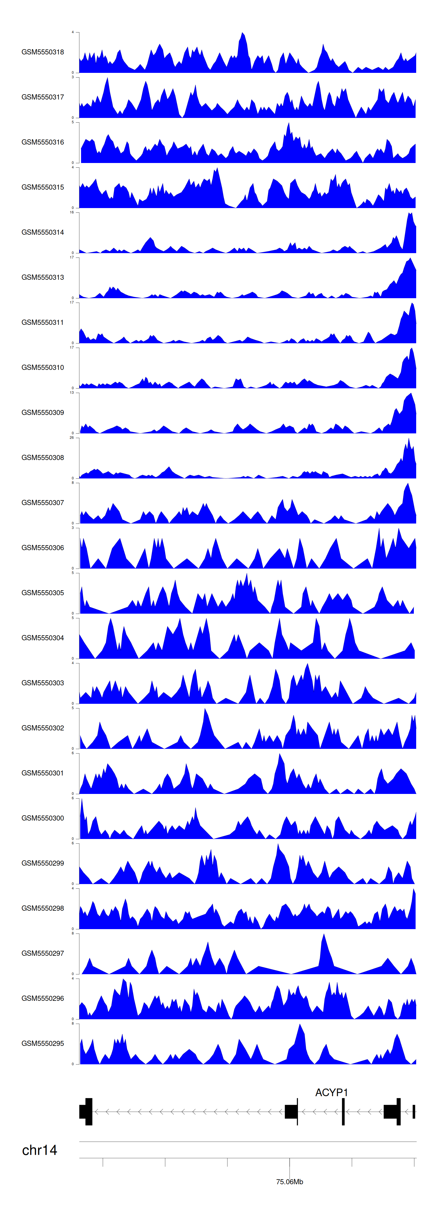 > Dataset: GSE143026 - ACYP1 peak across samples