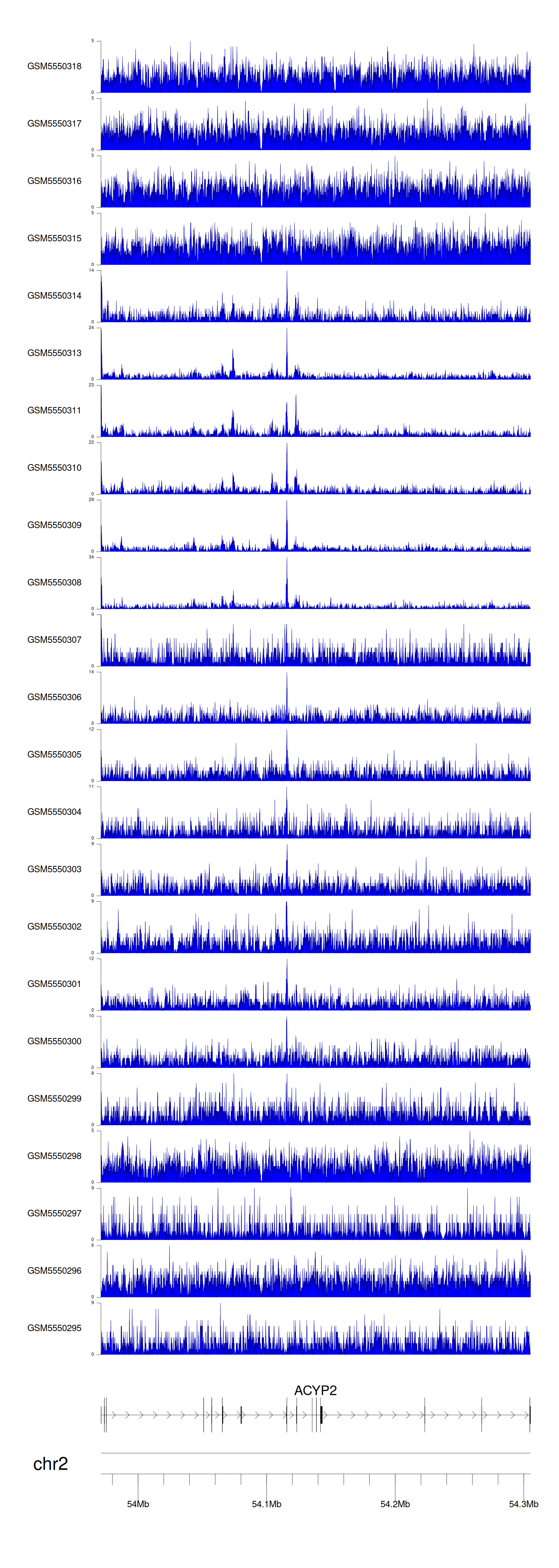 > Dataset: GSE143026 - ACYP2 peak across samples